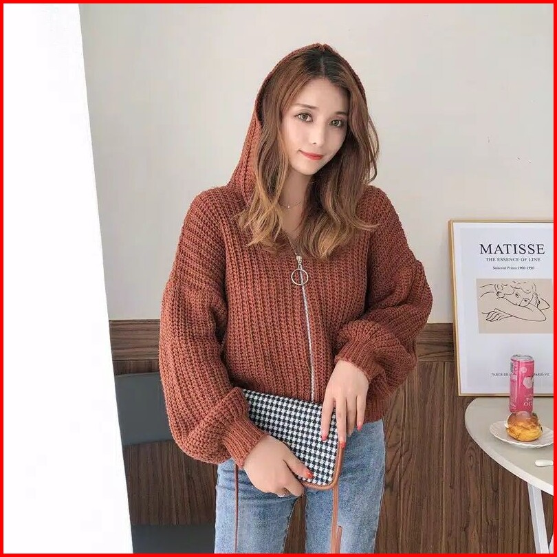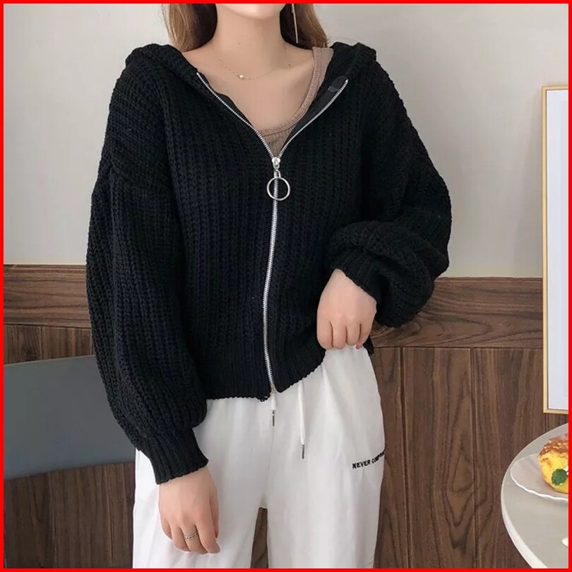 Tebal Jaket Wanita Oversize Reselting Rajut Outer Zipper
