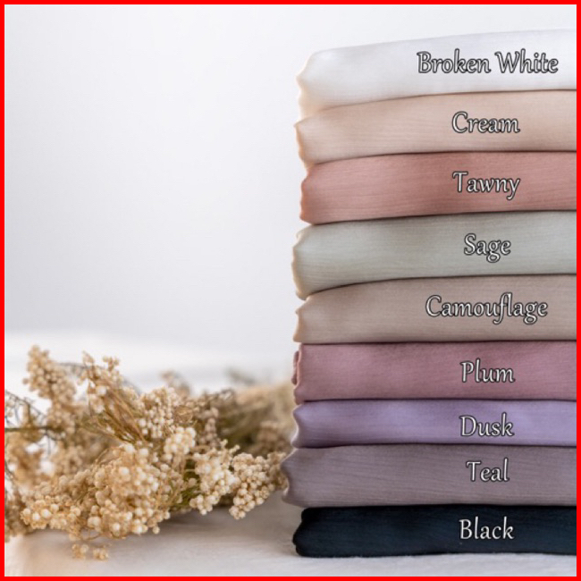 Black, Sage, Cream, Brokenwhite, Plum, Dusk, Tawny, Camouflage, Teal