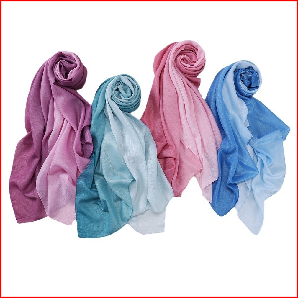 Lady Hijab Pashmina Satin Gradasi Tekstur Silk Premium Quality