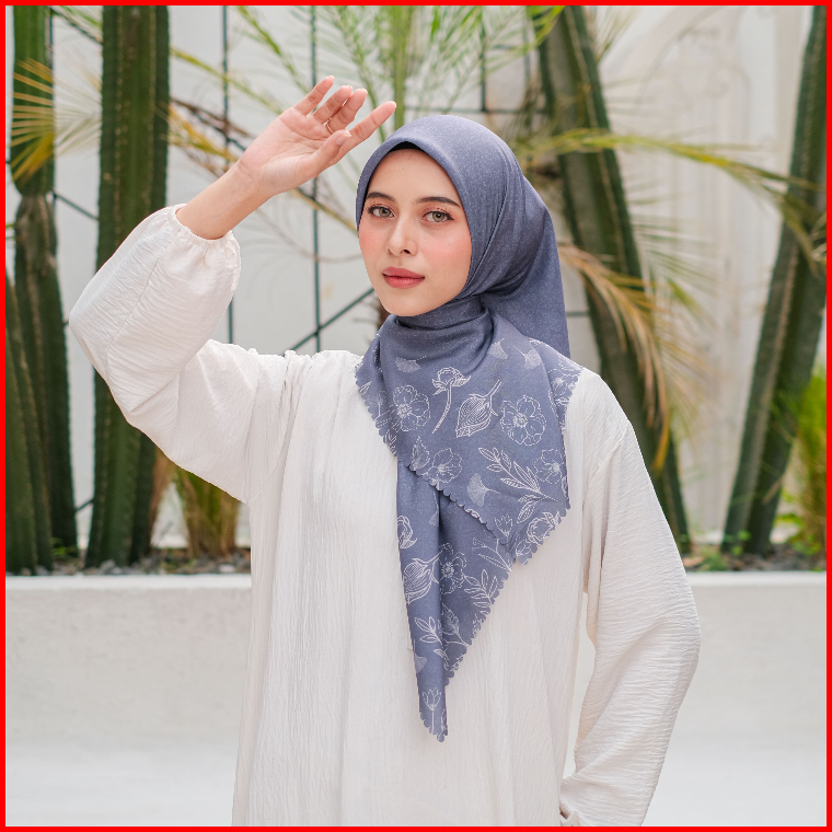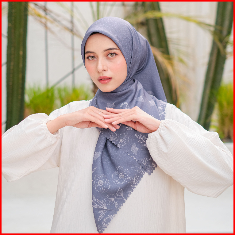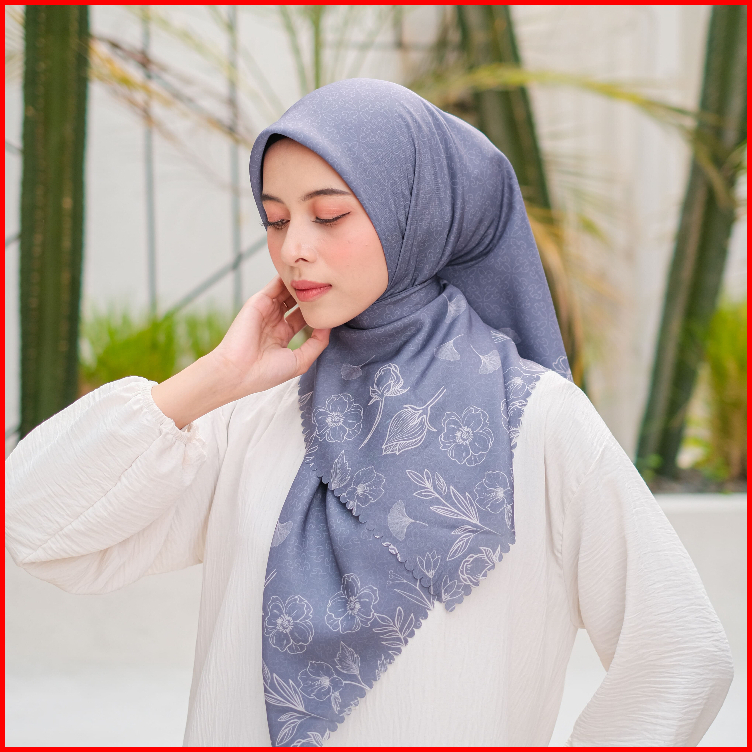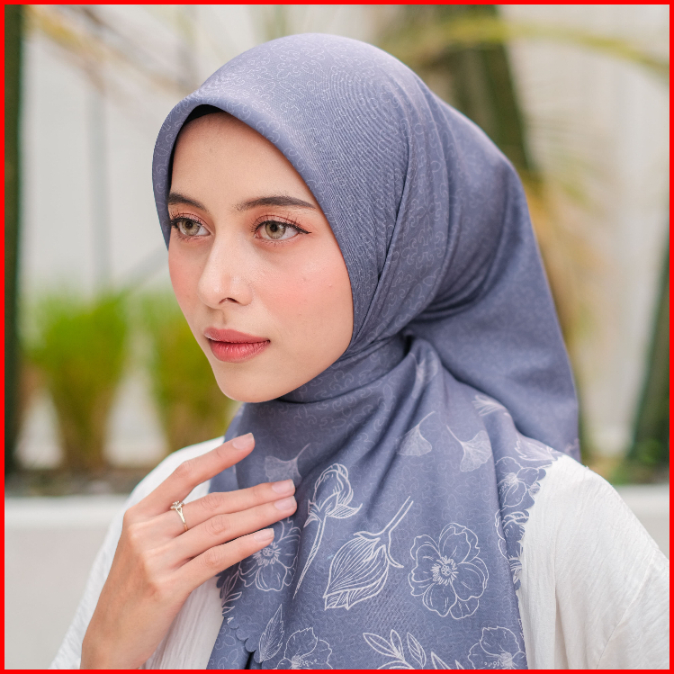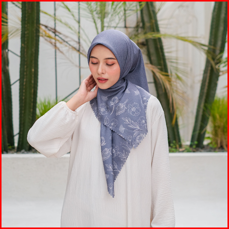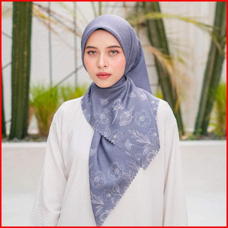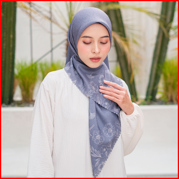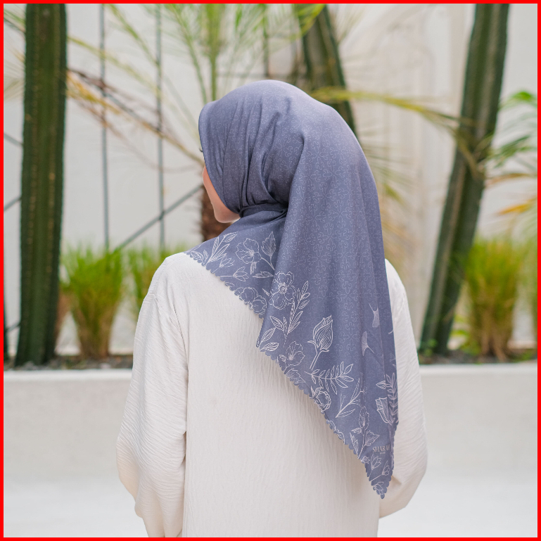 Sharah Laser Cut Hijab Segi Empat Print Motif Syaima Warna Purple Grey