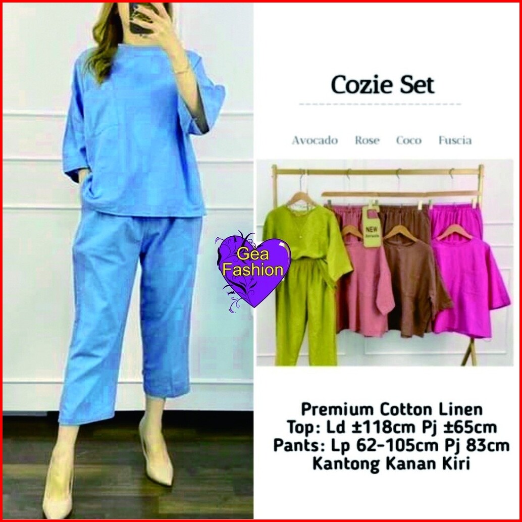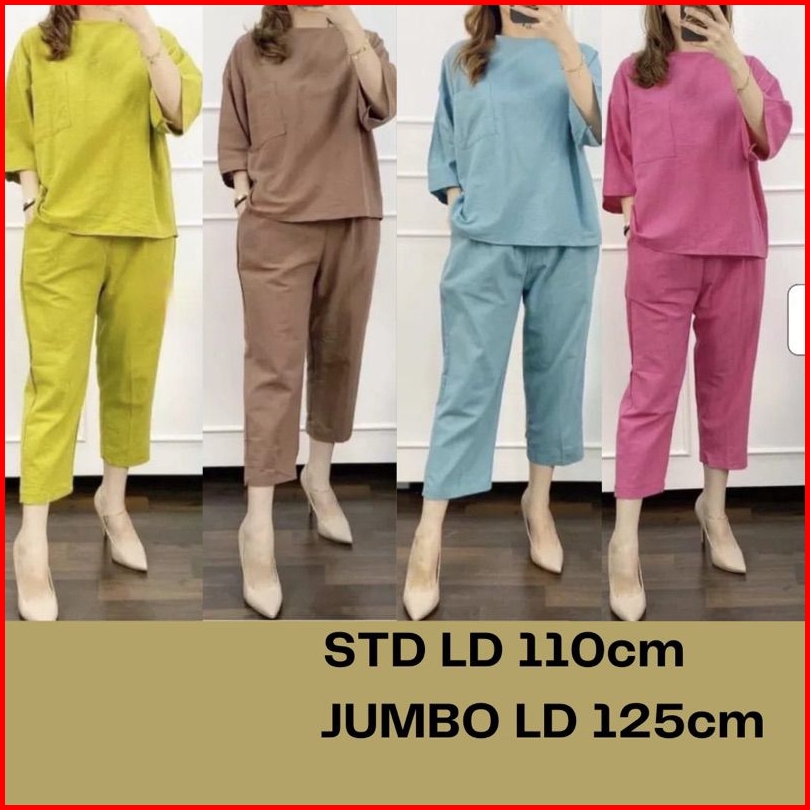 Cozie Set Top Pants Setelan One Set Linen Wanita Terbaru Cozie One Set Jumbo Setelan Wanita Terbaru Xxxl One Set Katun L
