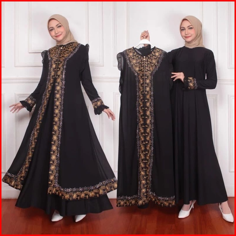 Gamis Abaya Turki Jersi Premium Rompi Lepas Renda Matahari