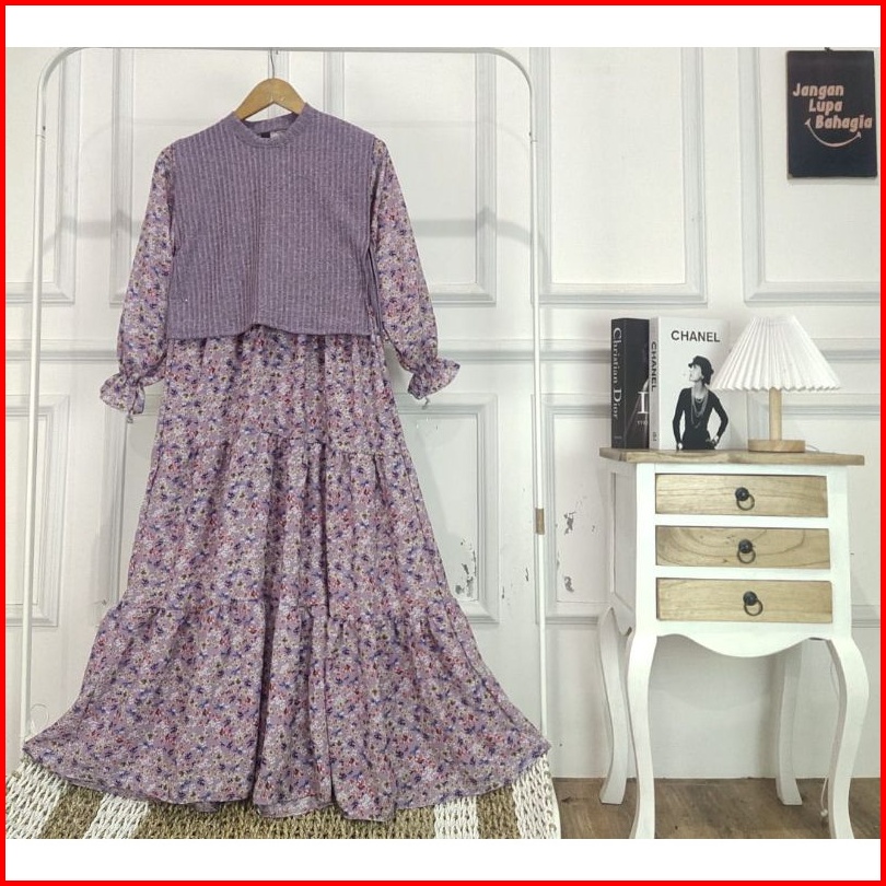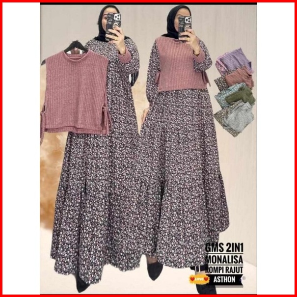 Gamis Rompi Terpisah Gamis Wanita Terbaru 2022 Gamis Kaos Knite 2in1