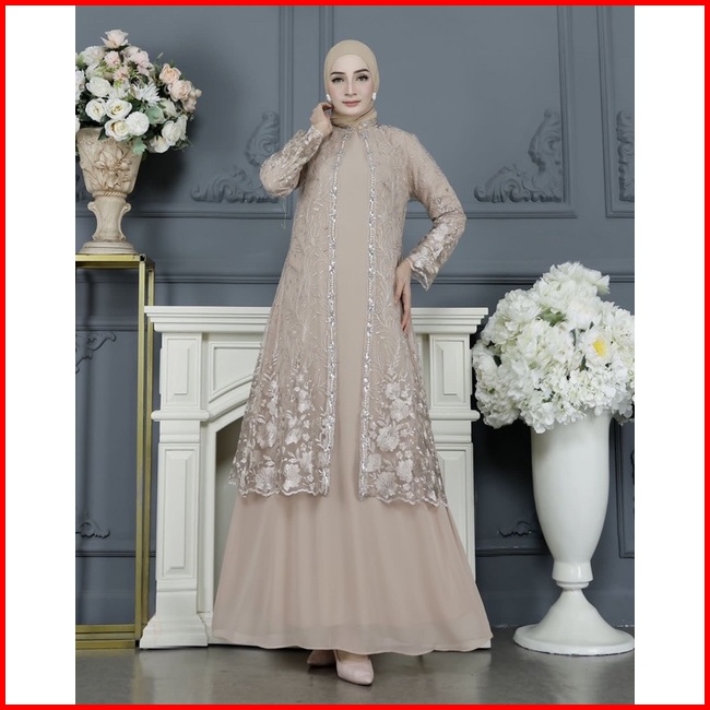 New Arrival Gamis Rompi Outher Terpisah Gamis Pesta Modern Gamis Tulle Non Gliter Gamis Kondangan Mewah Dres Kekinian Ga