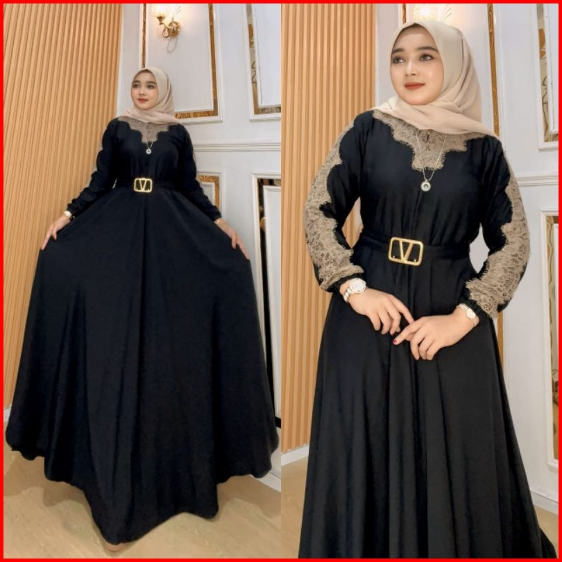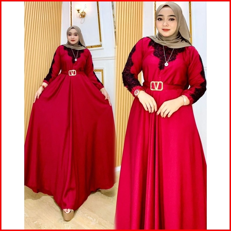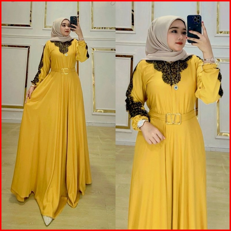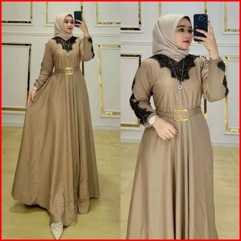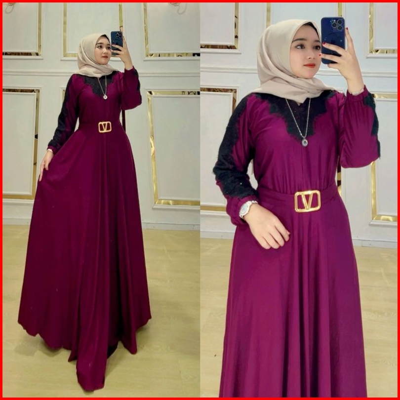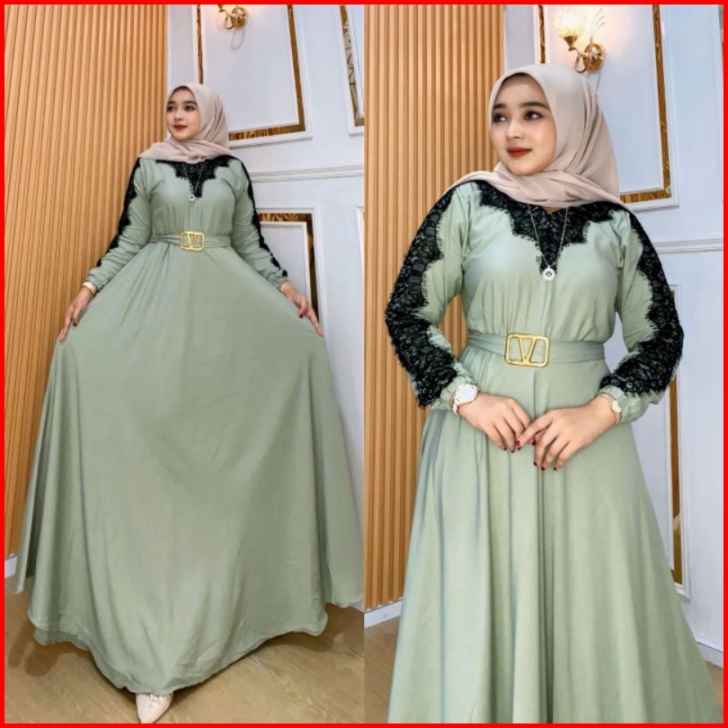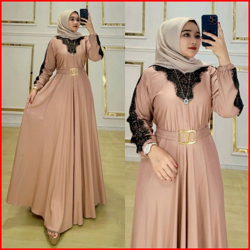 Gamis Wanita Miranda Baha Renda Free Belt Katun Rayon