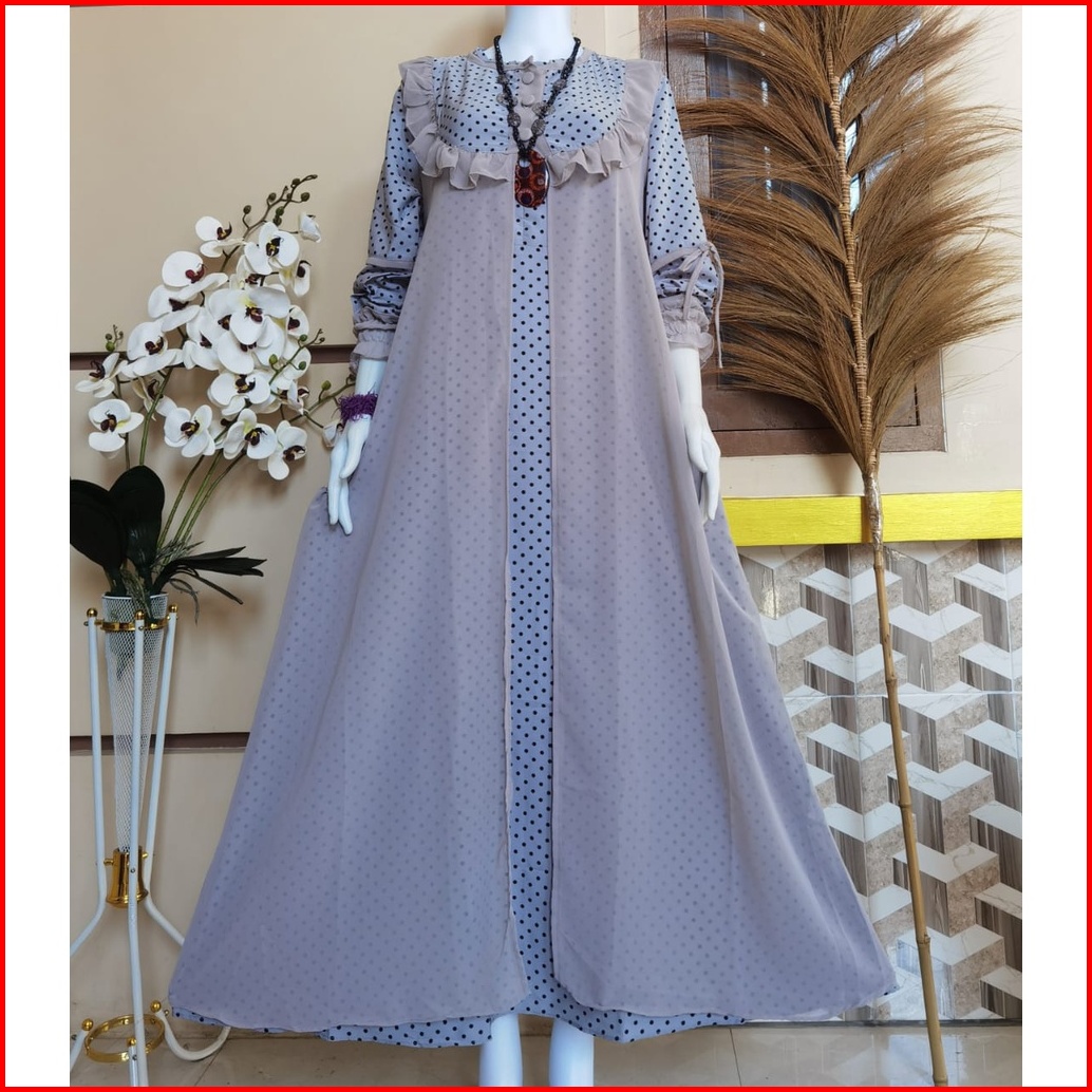 Baju Dewasa Gamis Wanita Longdress Kimiko Polka Rompi Lepas Pasang