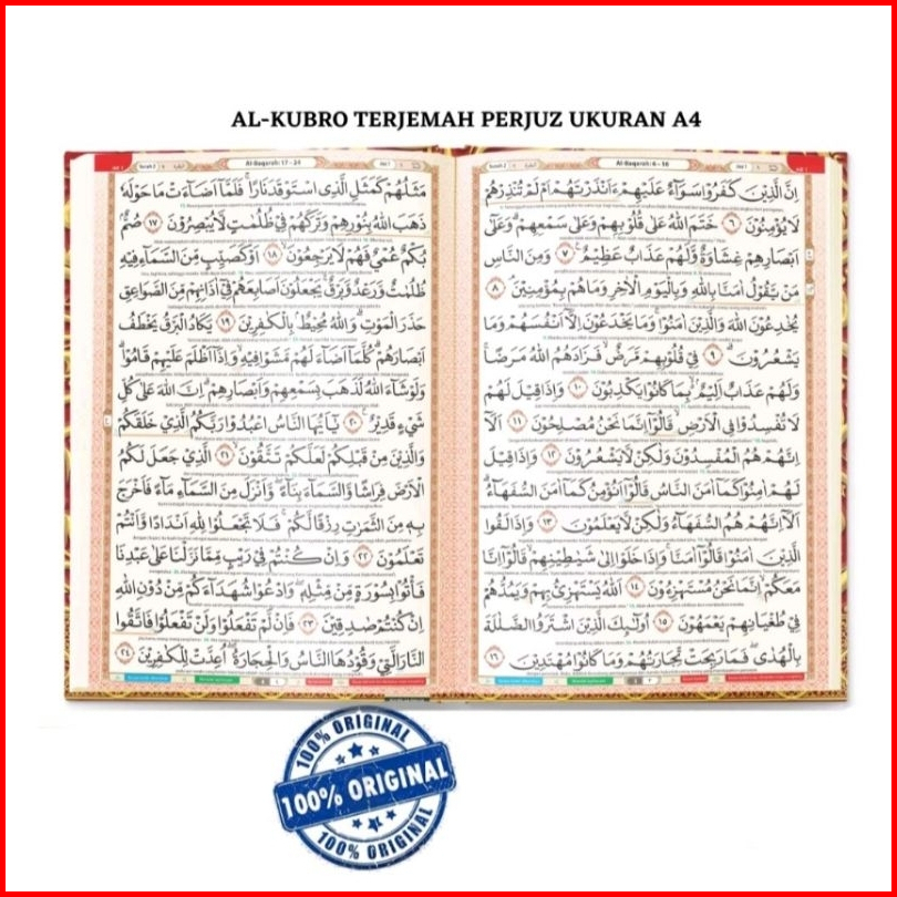 Al Quran Al-kubro Per Juz Ukuran Besar A4 21x29 7cm Fitur Waqof Ibtida Soft Cover Terjemah Per Baris
