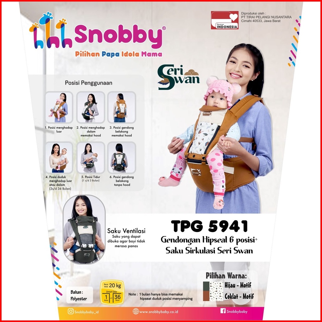 Gendongan Hipseat Gendongan Depan M-shape 6 Posisi Saku Sirkulasi Seri Swan Snobby - Tpg5941