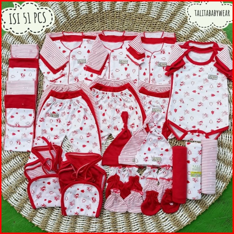 51 Pcs Perlengkapan Bayi Baru Lahir Seri Merah Paket Brojol Baby Newborn Komplit Paket Baju Bayi Lengkap Talitababywear