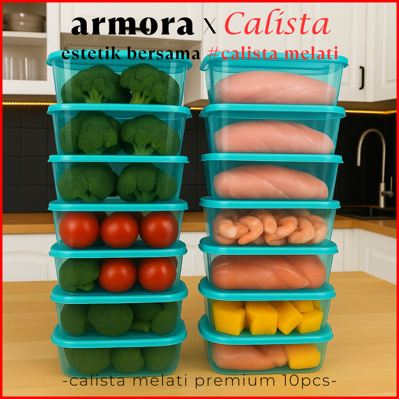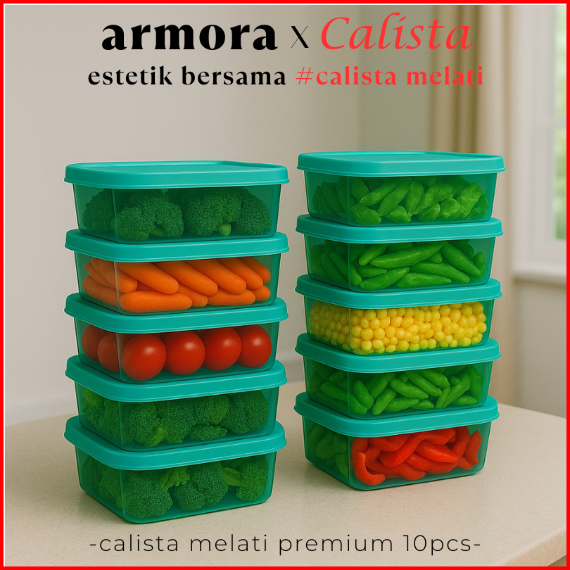 Calista Toples Calista Melati Set Isi 10pcs Food Container Plastik Prep Kulkas Set Tempat Penyimpanan Makanan Buah Sayur