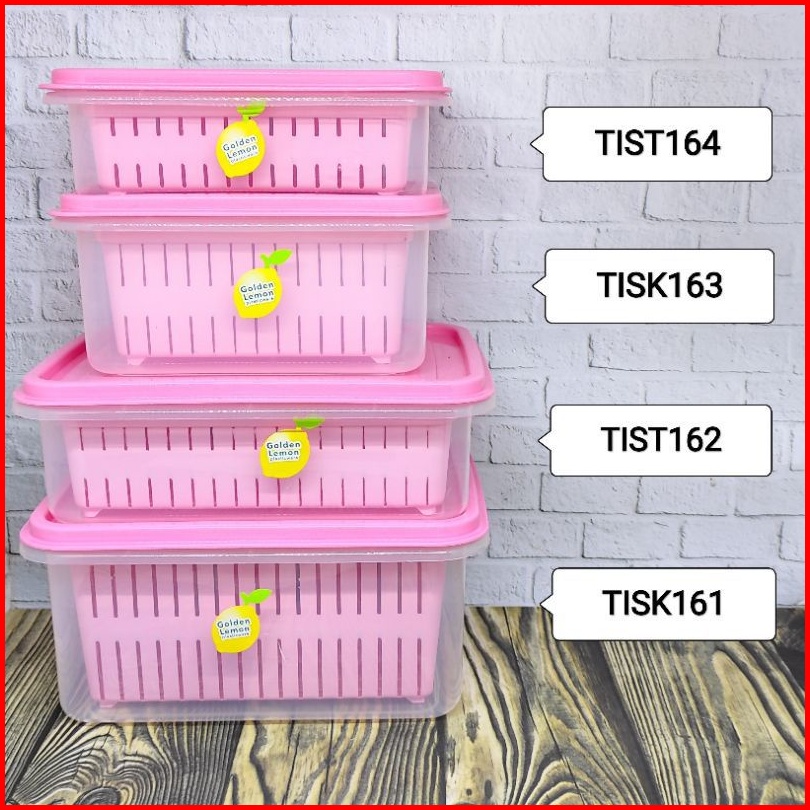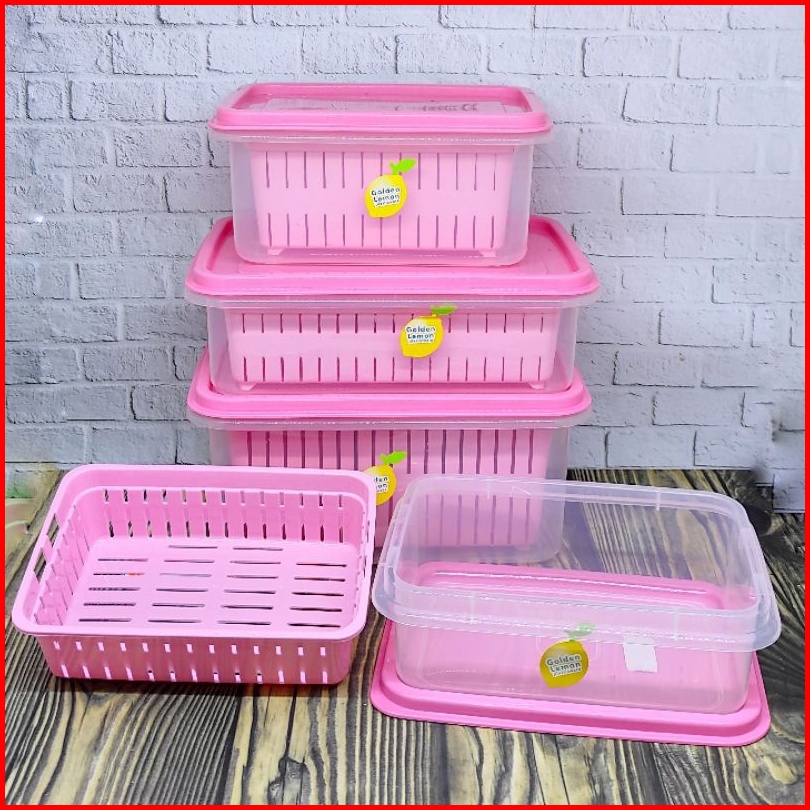 Paket Bundling 1 Set Isi 4pcs Box Sayur Pink 2 In 1 Kotak Penyimpanan Bahan Makanan