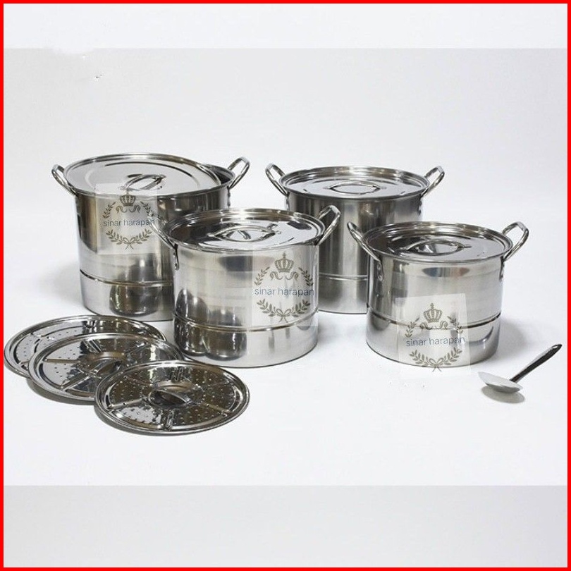 Kitchen Ware - 1 Set 4 Pcs Stock Pot Steamer Panci Kukus Dandang Stainless