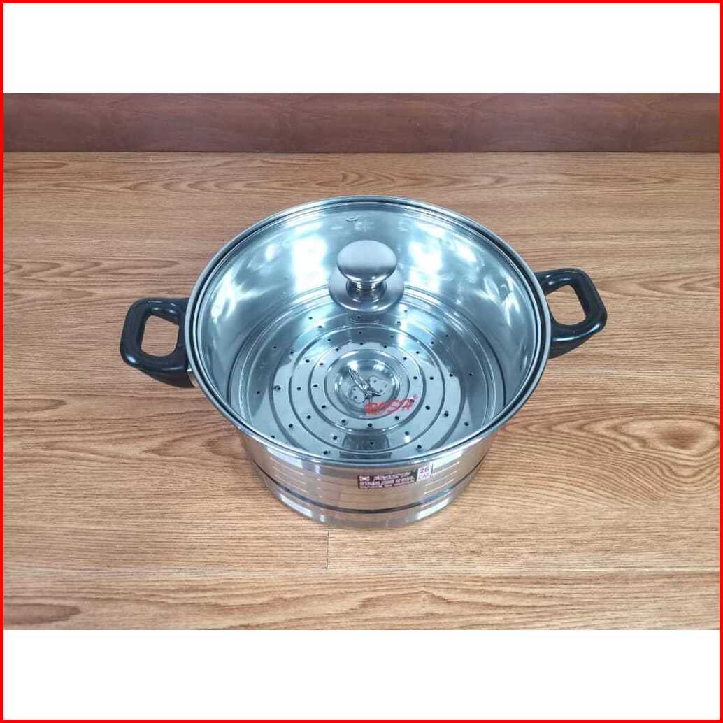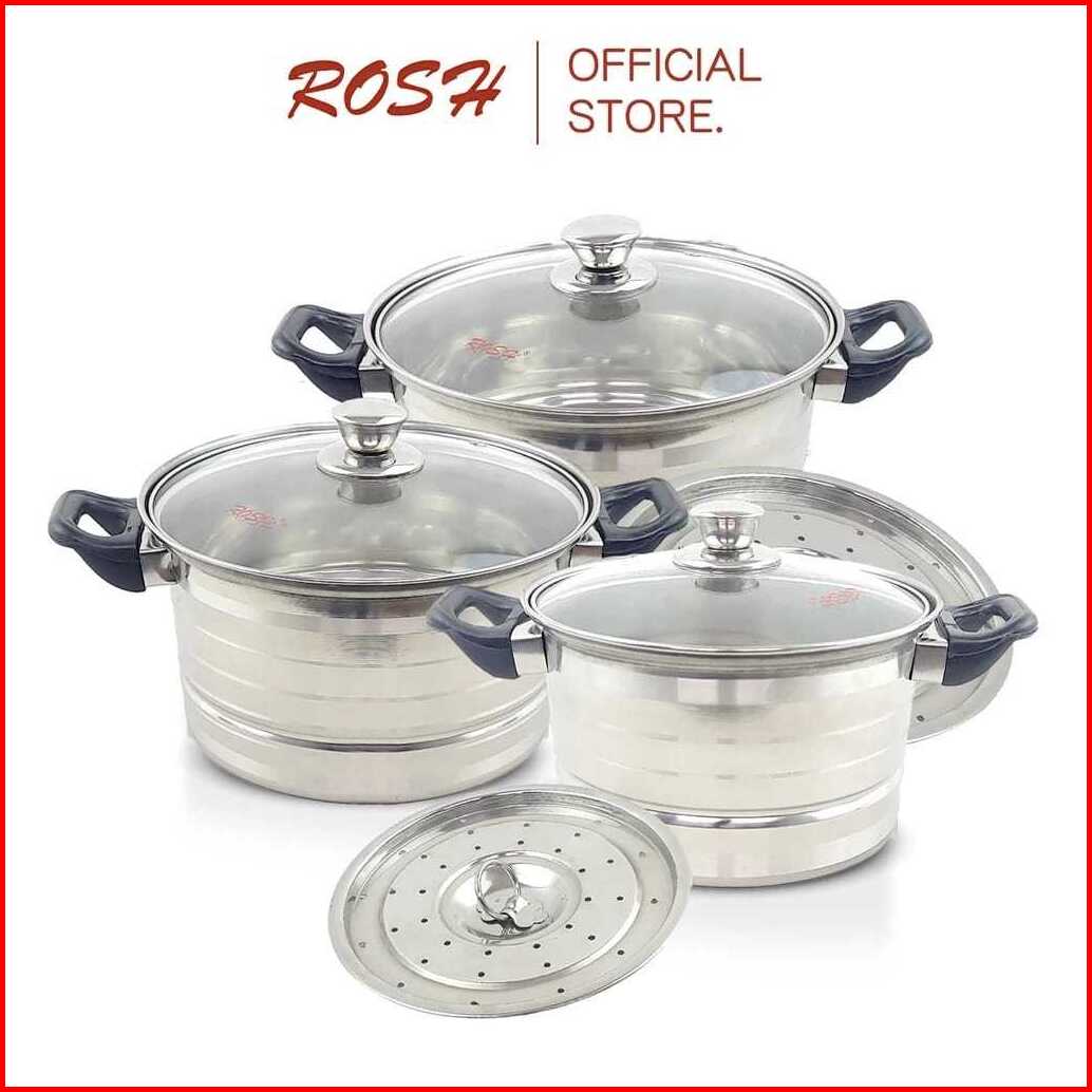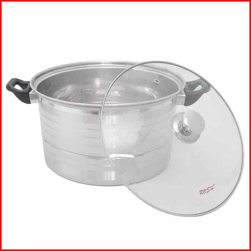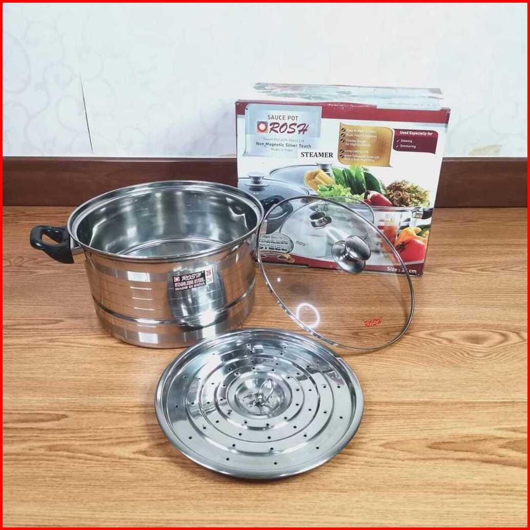 Rosh Panci Kukus Tutup Kaca Saucepot 22 24cm Stainless Steel