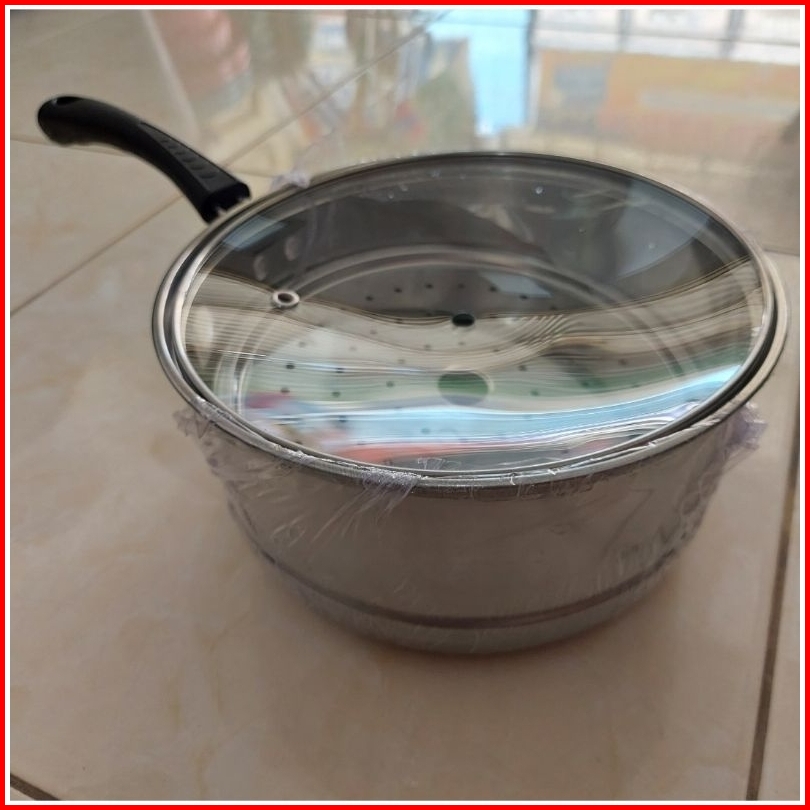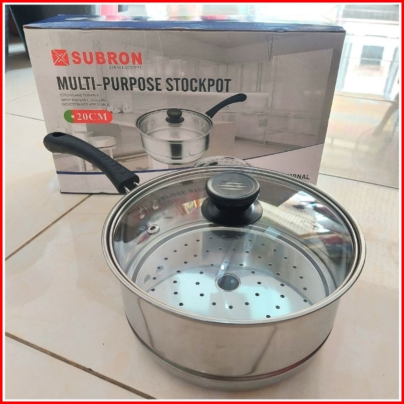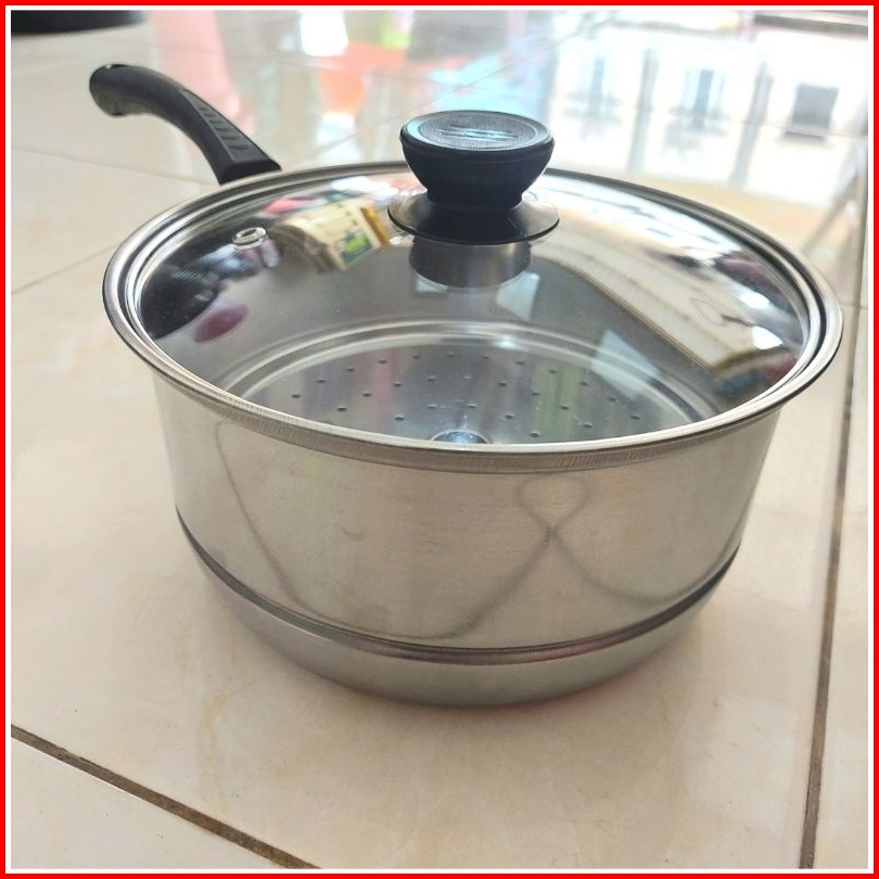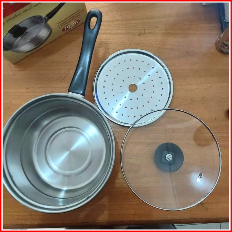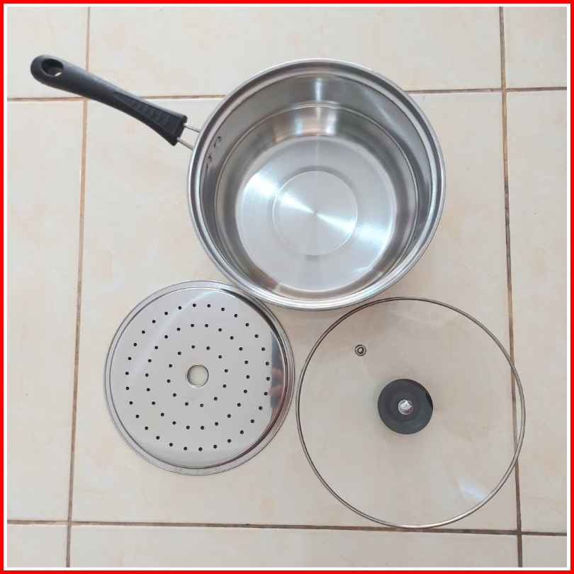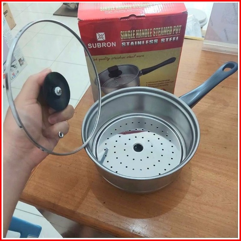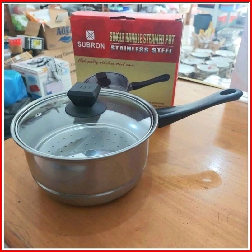 Panci Susu Stainless Subron 20cm Tutup Kaca Kukusan - Dapur Karya Mdn