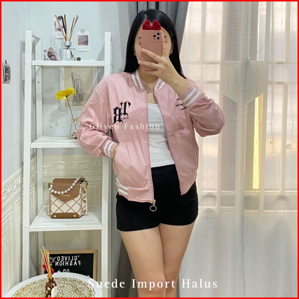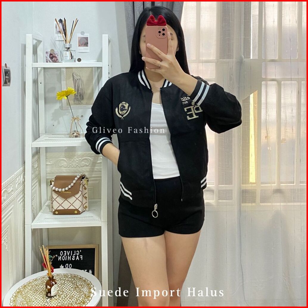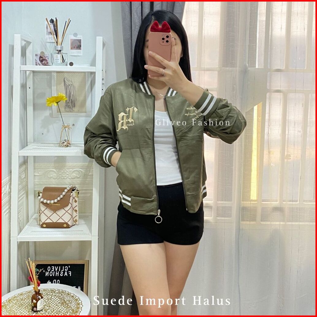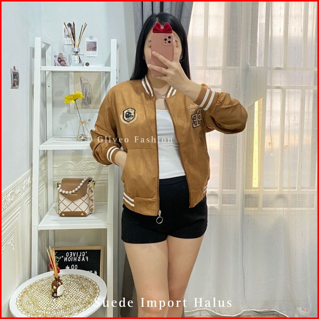 Gliveo - Jaket Bomber Suede Halus Import Jaket Wanita Terbaru Jaket Suede Import