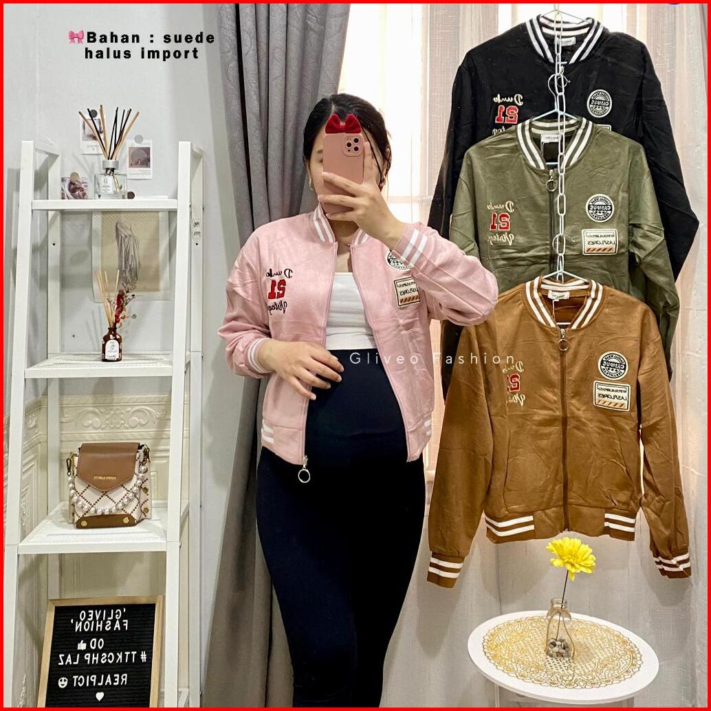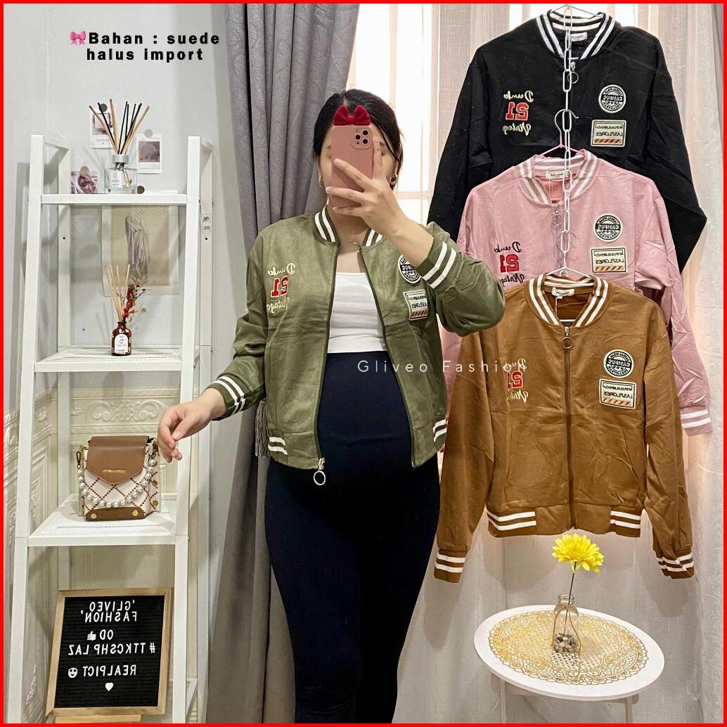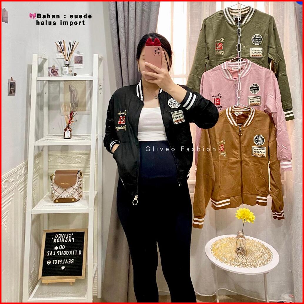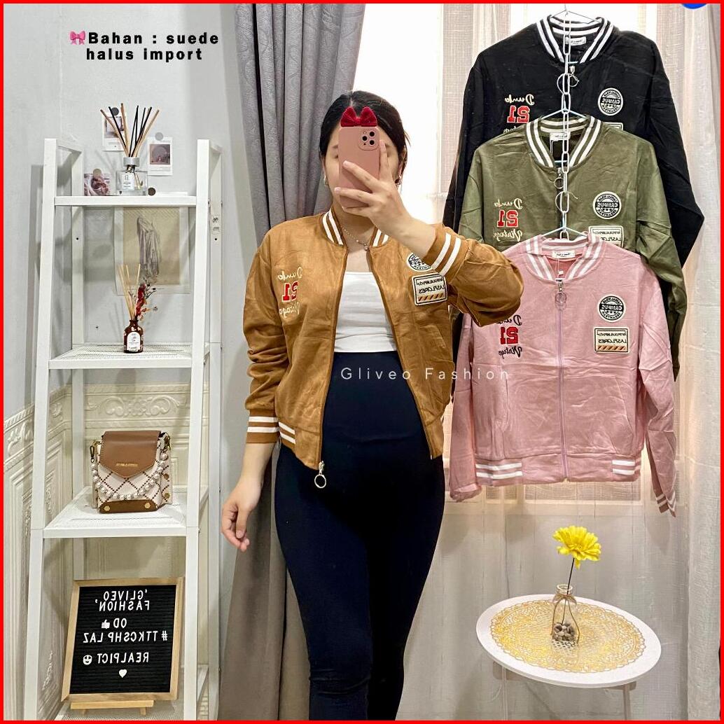 Gliveo - Jaket Bomber Suede Halus Import Jaket Wanita Terbaru Jaket Suede Import