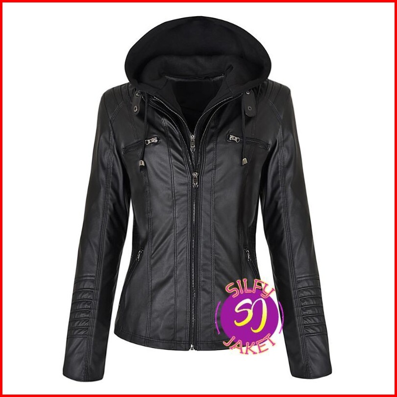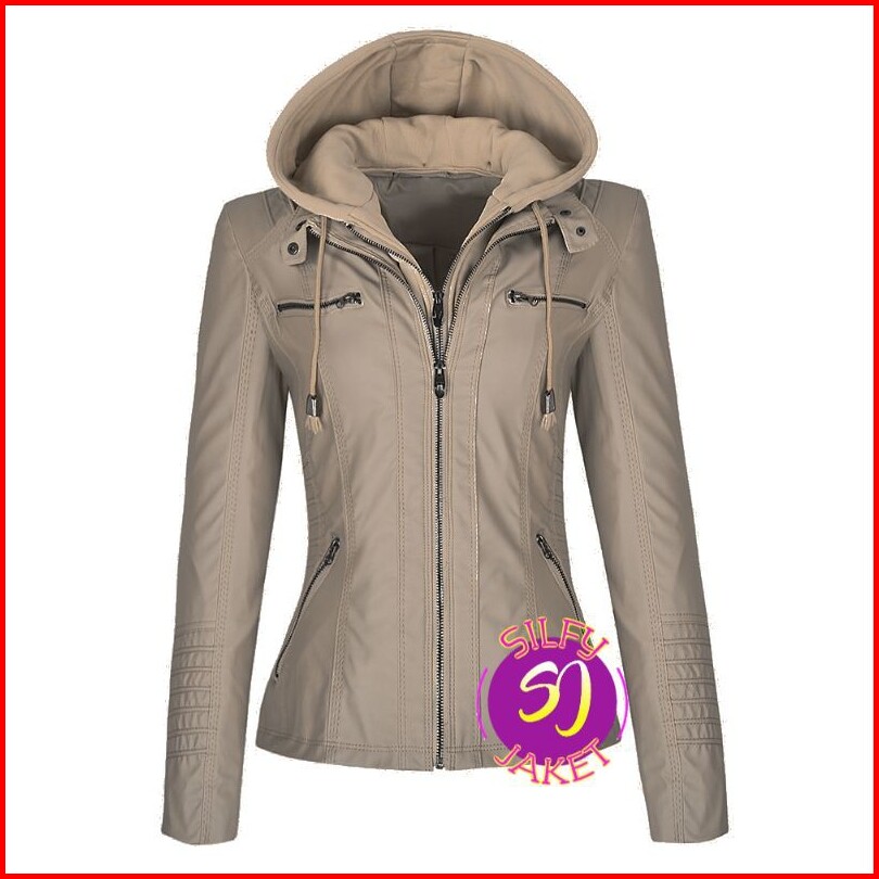 Jaket Hoodie Cewek Jaket Kulit Sintetis Wanita