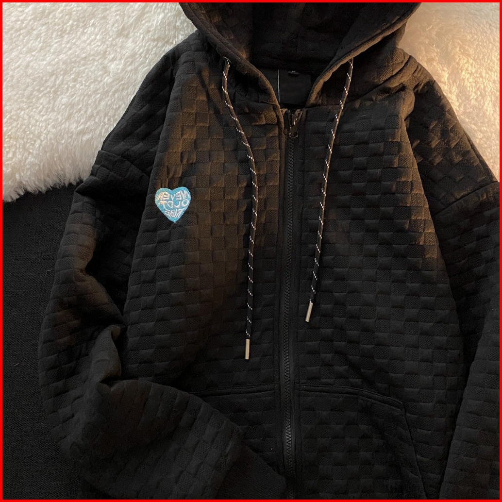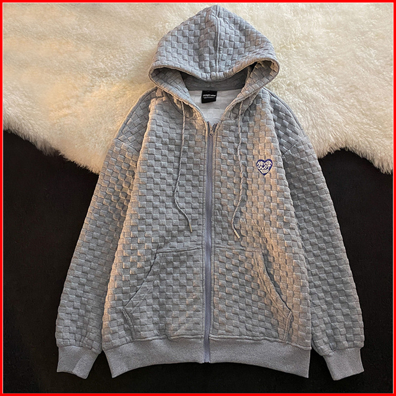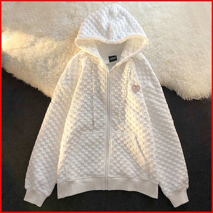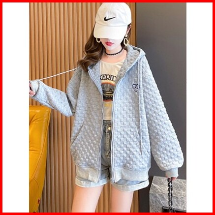 Uninice Jacket Berkerudung Wafel Hoodie Atasan Kardigan Ritsleting Wanita Sederhana Longgar