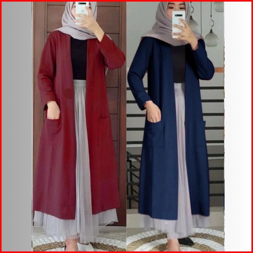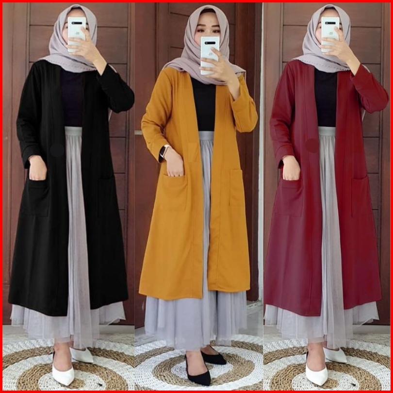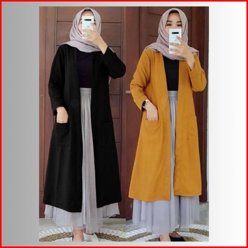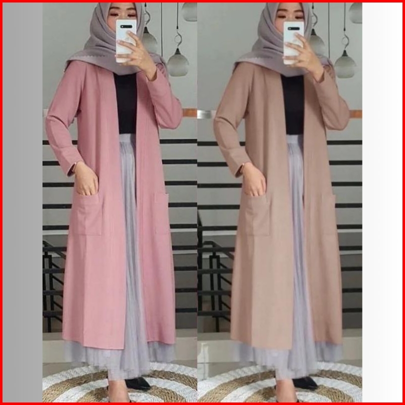 Outer Blazer Panjang Wanita Muslimah Kekinian Terbaru Blazer Long Cardigan Wanita Bahan Kaos Nyaman