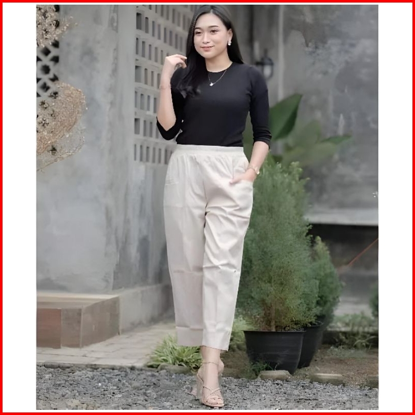 Celana Wanita Unicloo Korean Pants 7 8 Celana Wanita Korea Style Bahan Twill Combed Premium Stretch Tebal
