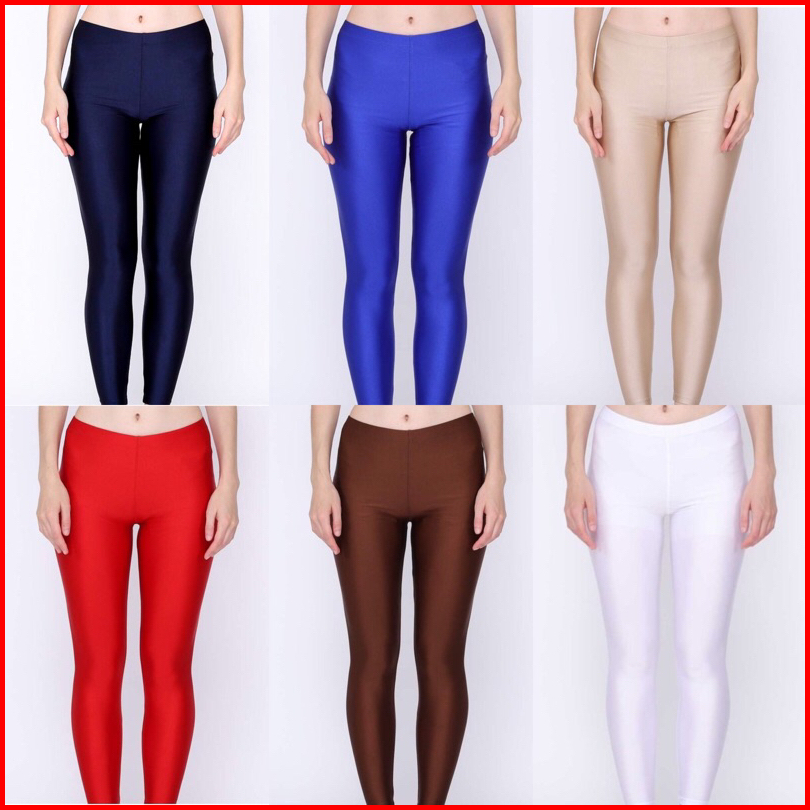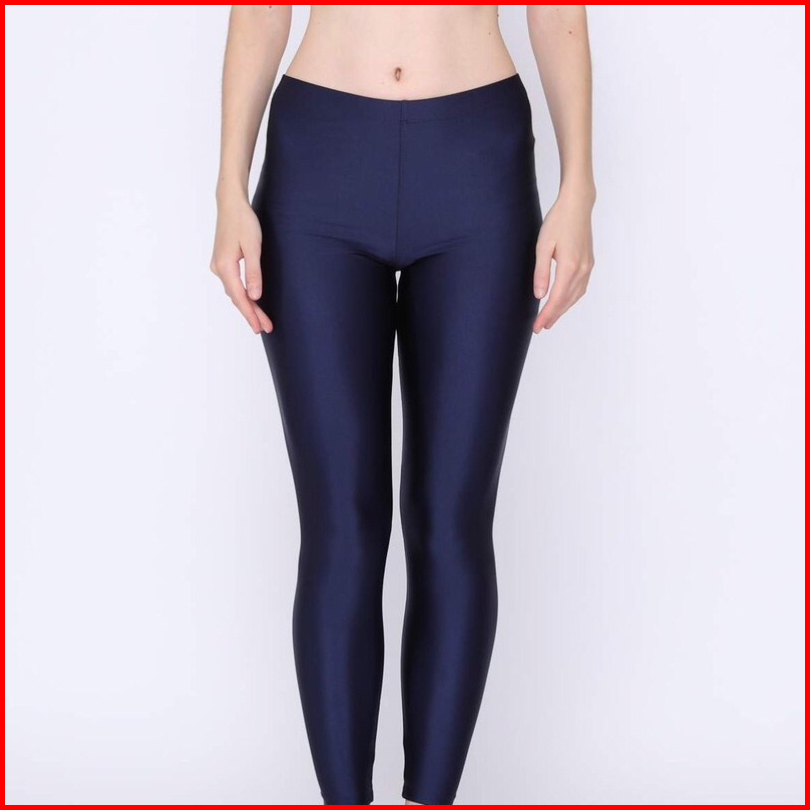 Celana Legging Mengkilap Polos Bahan Lycra Tebal Berkualitas Hijab Friendly Wanita