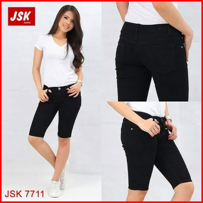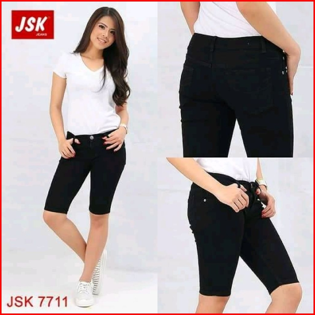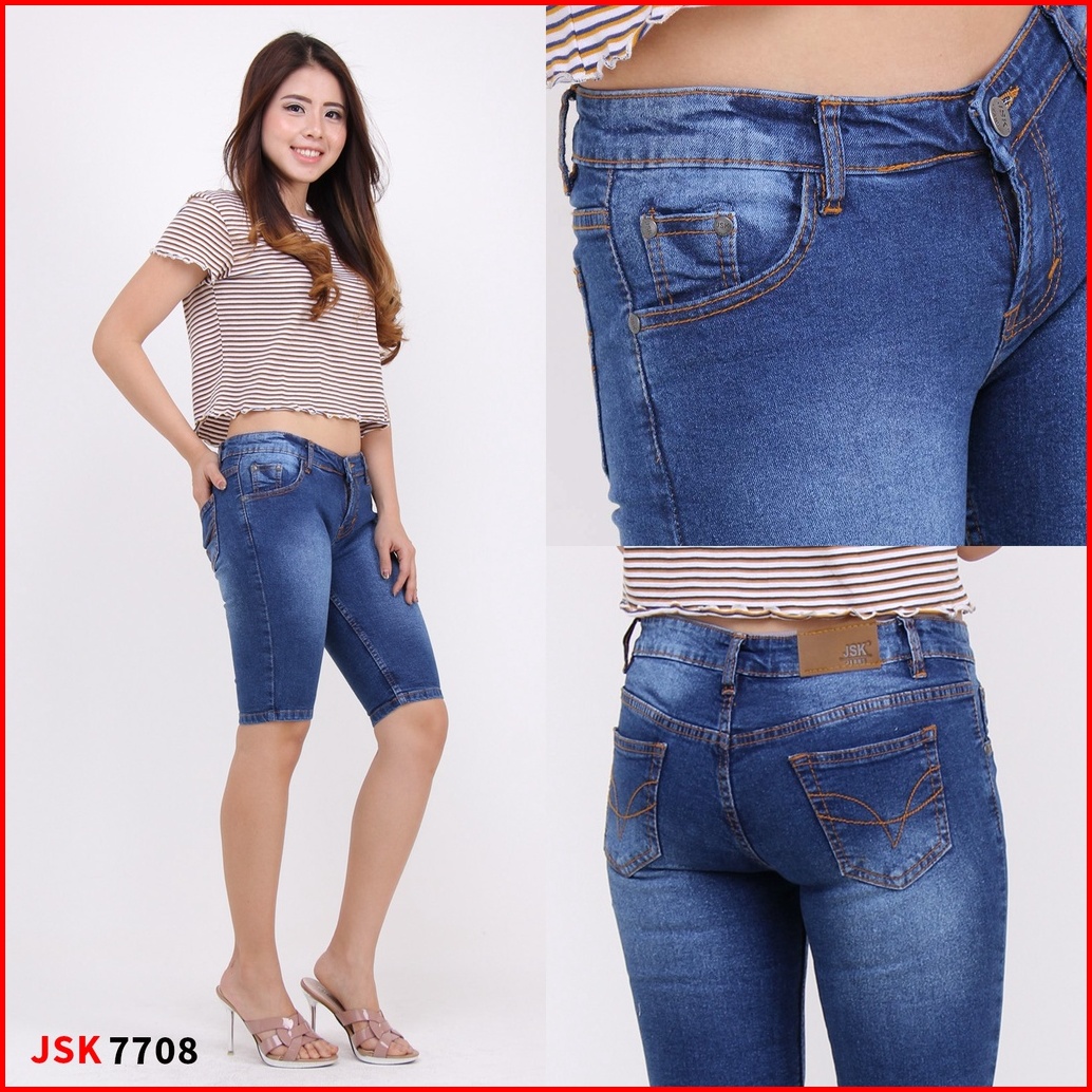 Celana Pendek 3 4 Jeans Wanita Polos Denim Stretch Nyaman Stylish Jsk Jeans