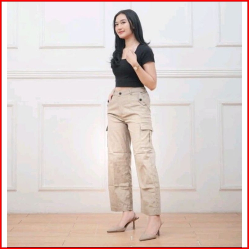 Celana Kulot Cargo Wanita Higwaist Celana Cargo Premium Twill Combed Loose Cargo Pant Olexa Cargo Cargo Pant Korean Styl