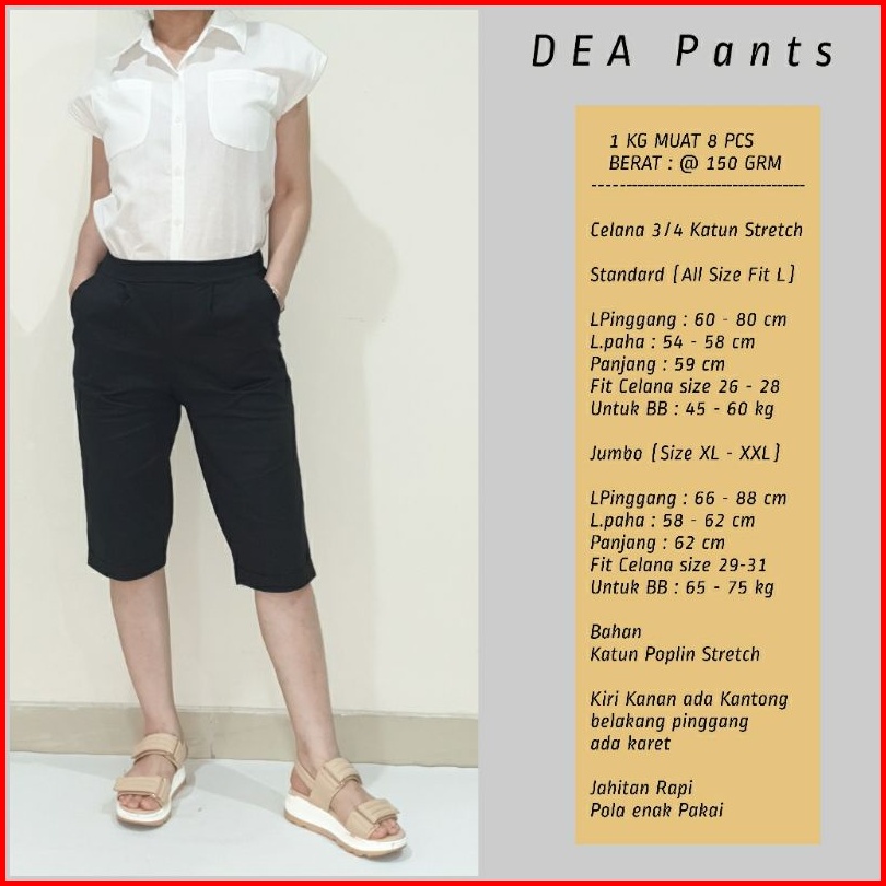 Celana Pendek 3 4 Katun Stretch Wanita Dea Pants