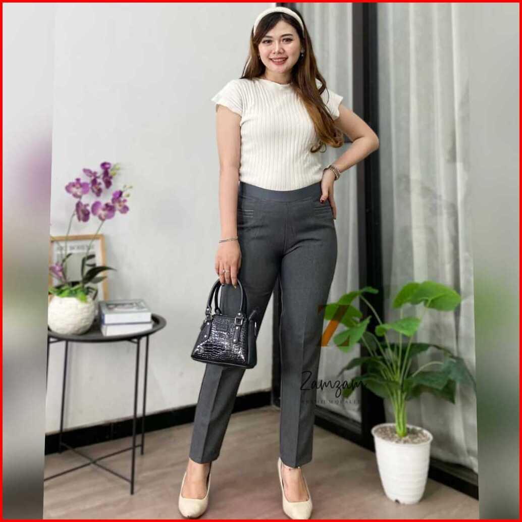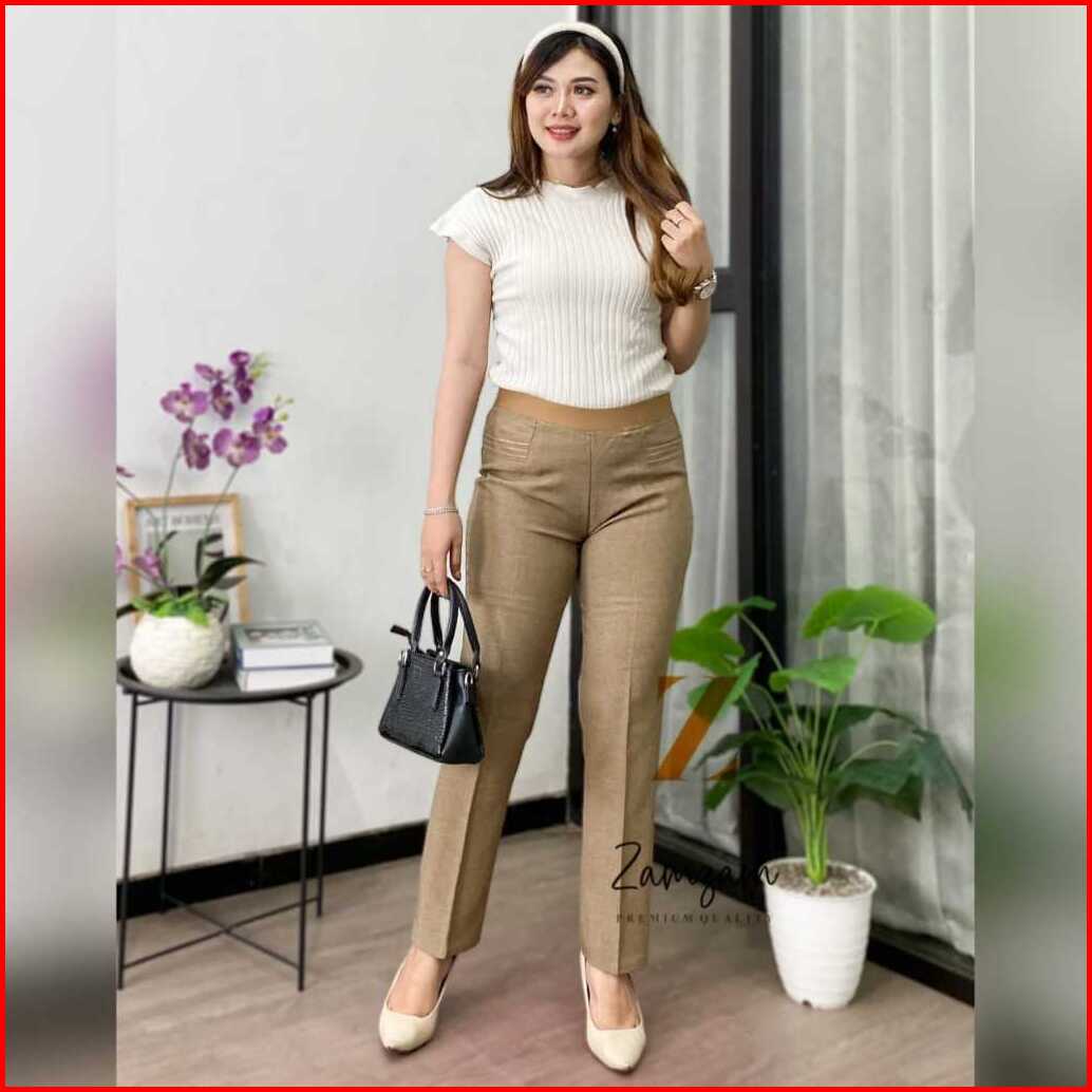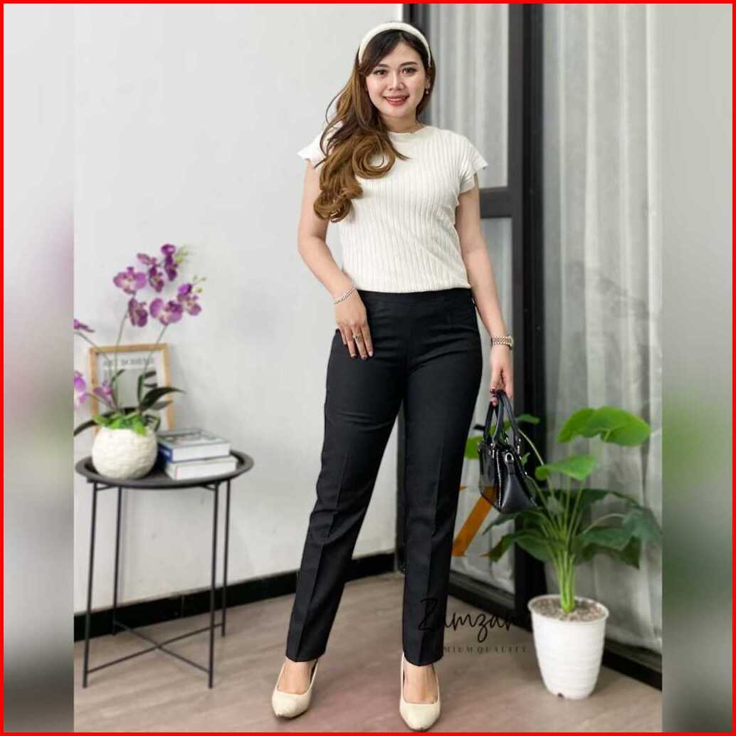 Celana Wanita Panjang Pinggang Karet Kekinian Celana Kantor Bahan Jumbo