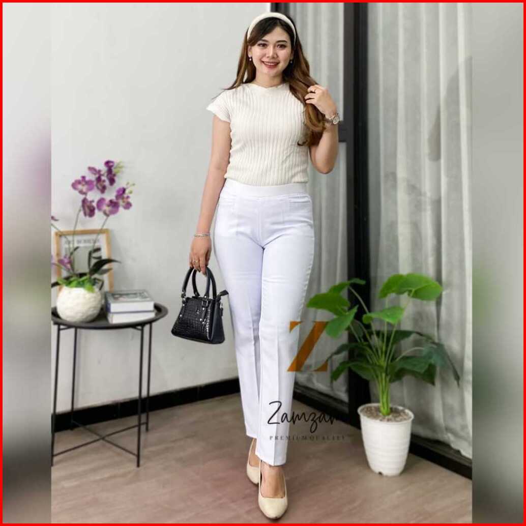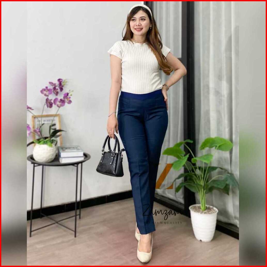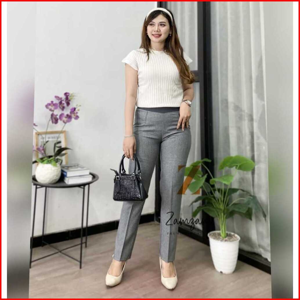 Celana Wanita Panjang Pinggang Karet Kekinian Celana Kantor Bahan Jumbo