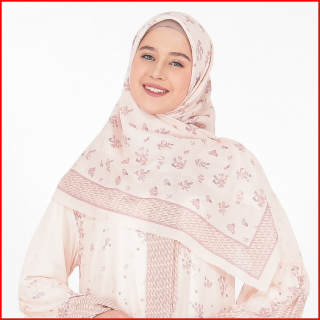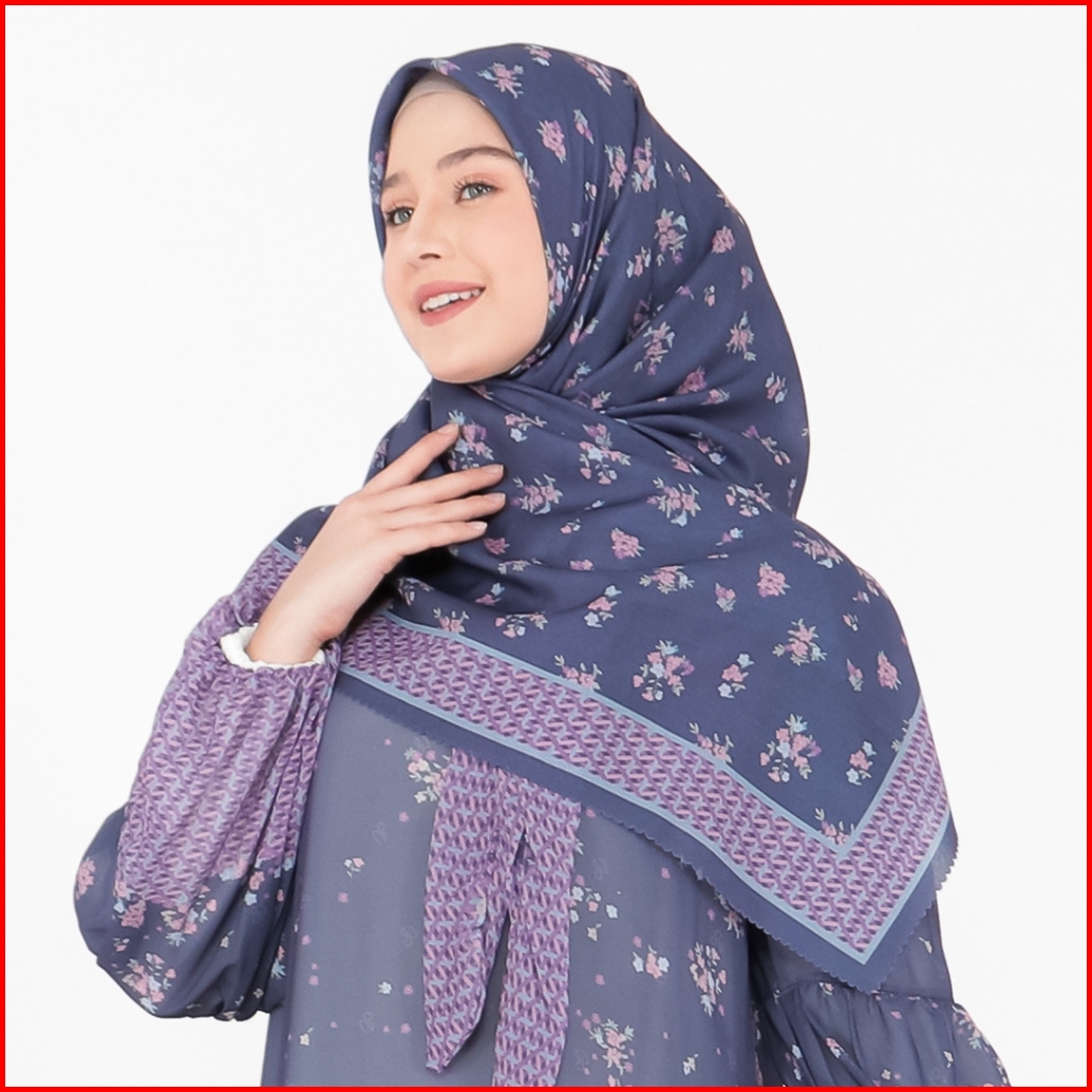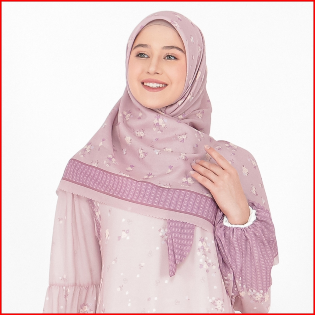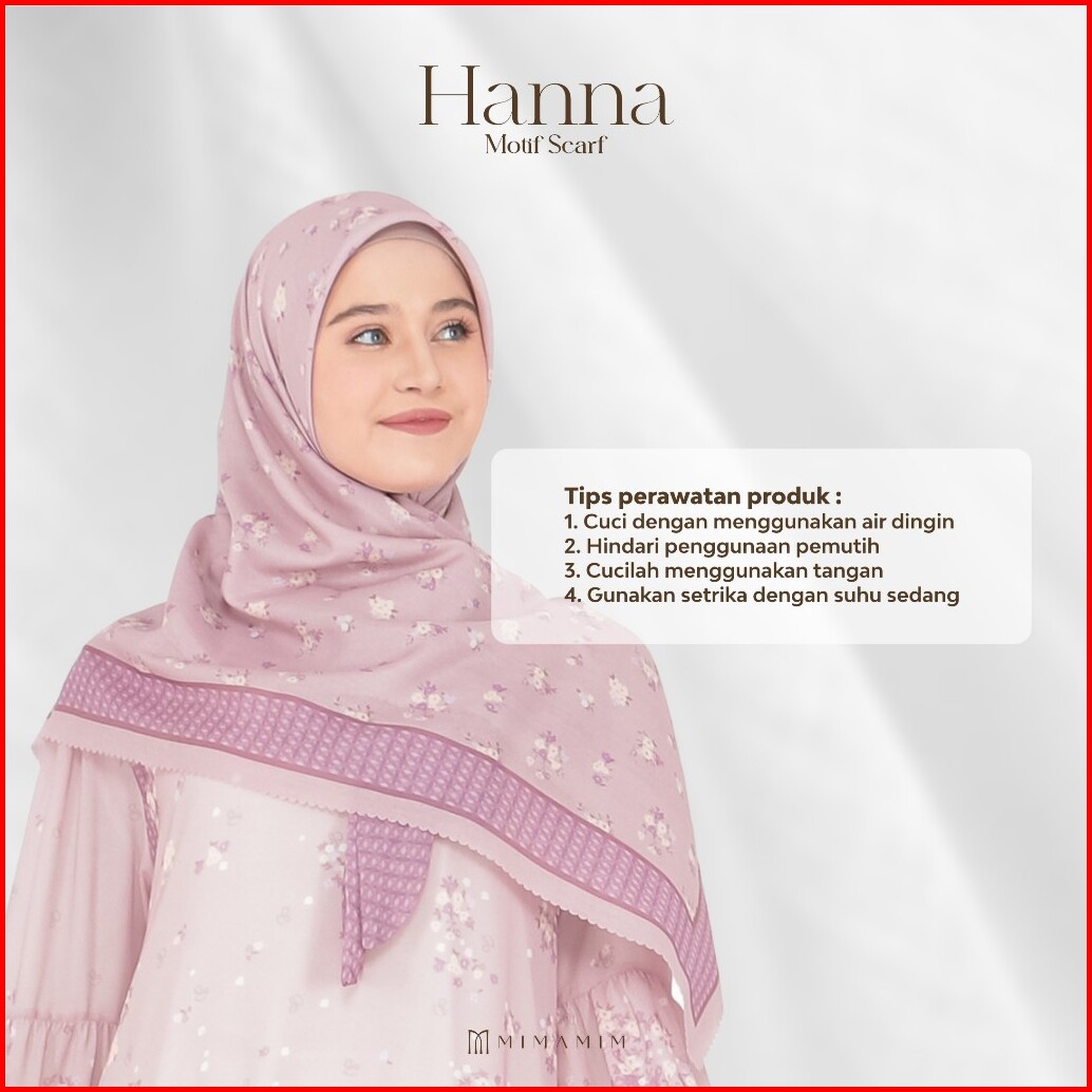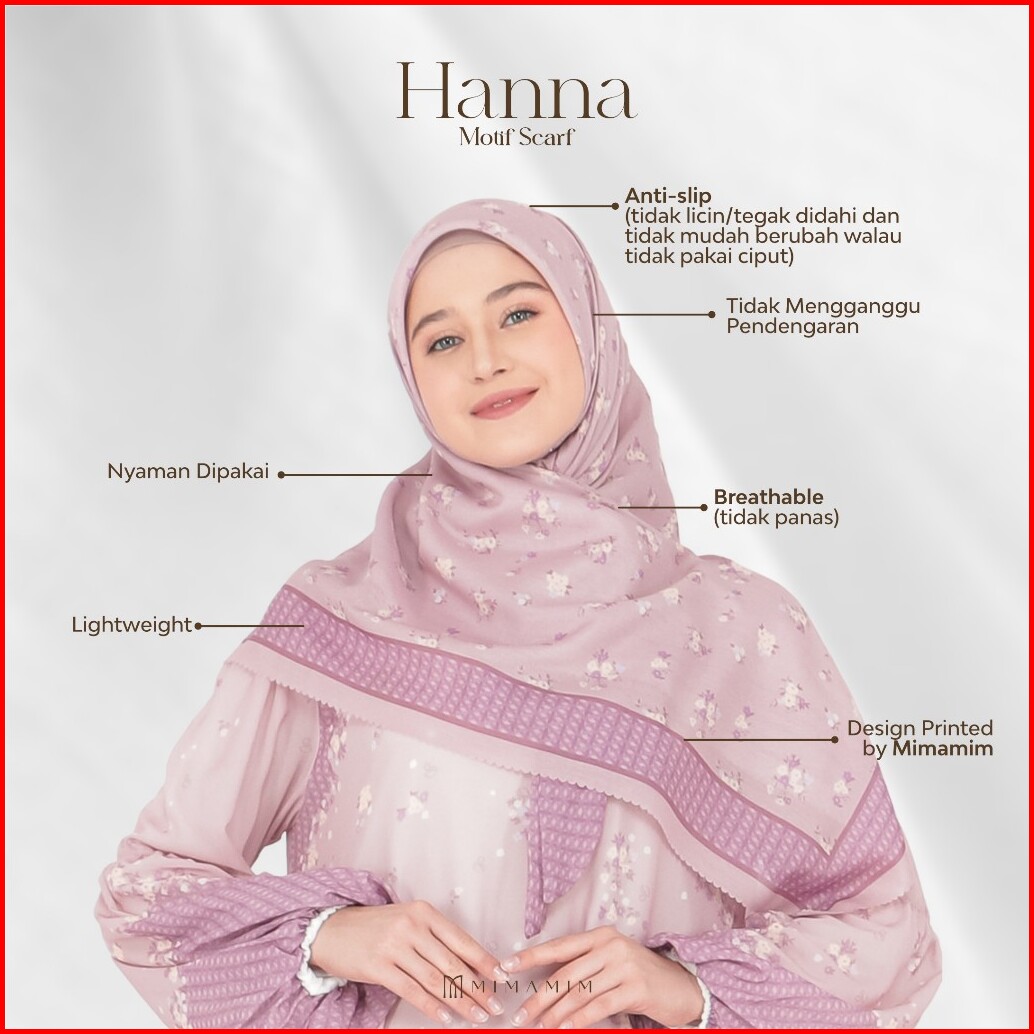 Mimamim Hijab - Jilbab Hanna Segiempat Motif Printed Scarf Voal Premium Kerudung Square Lasercut