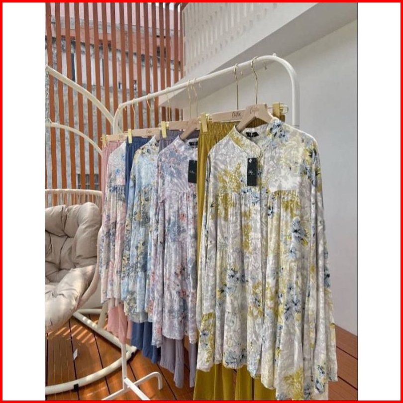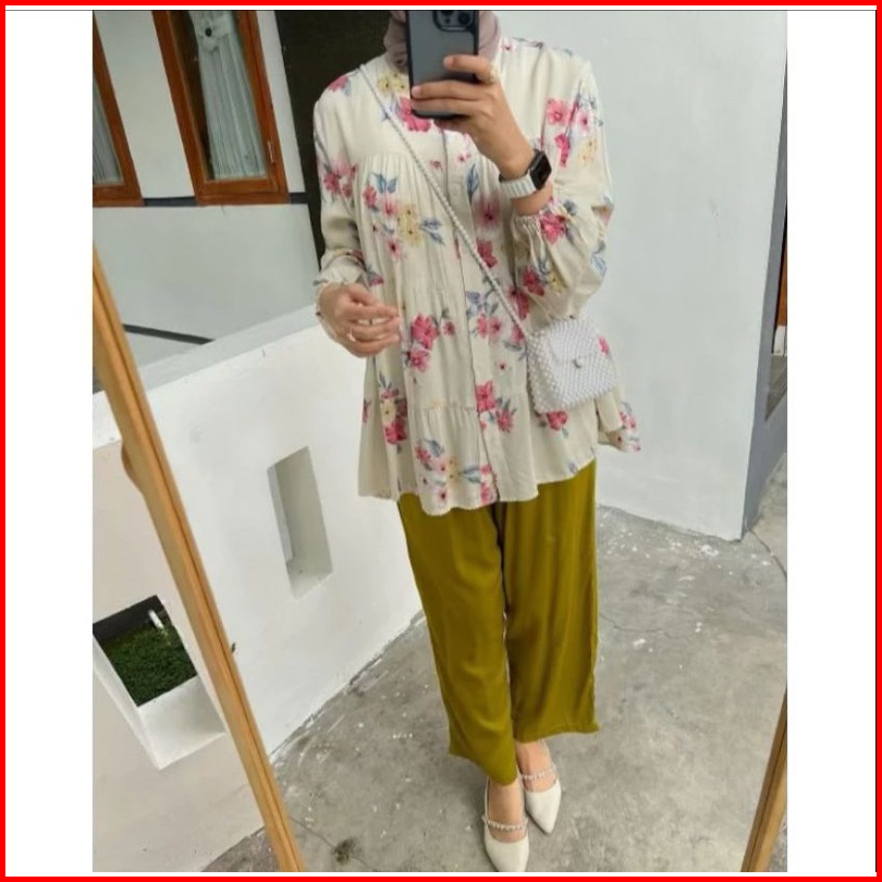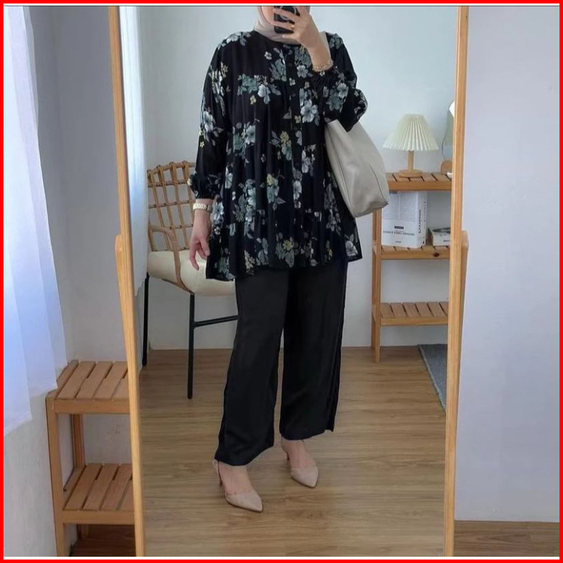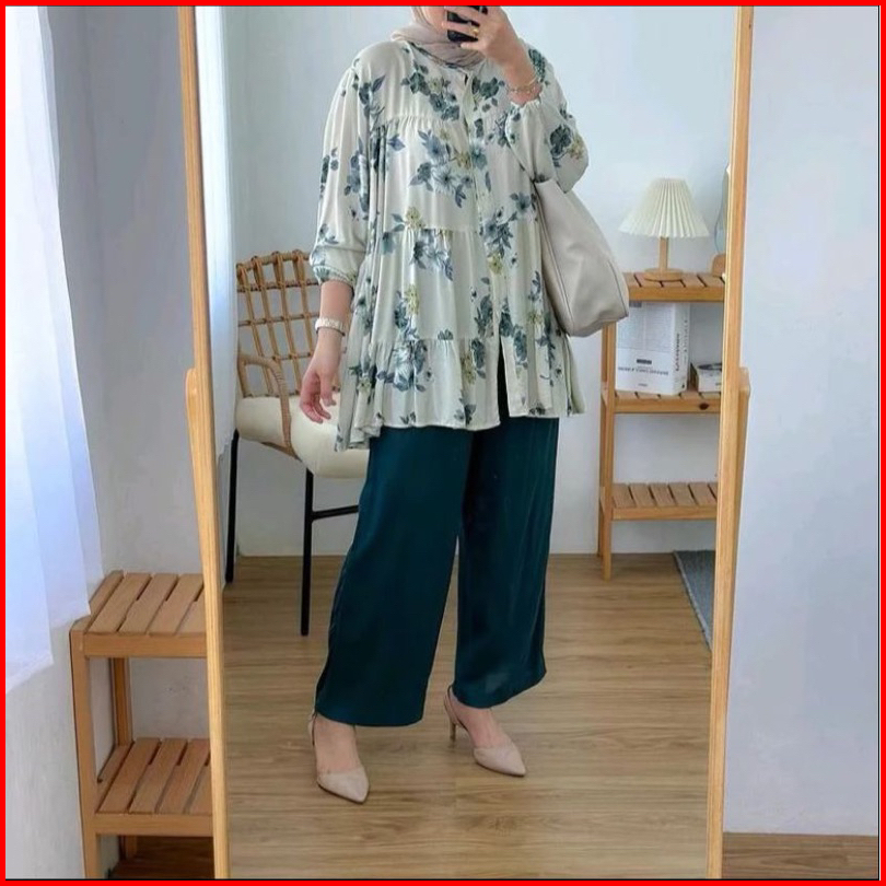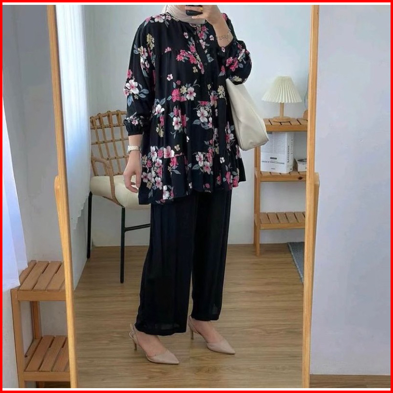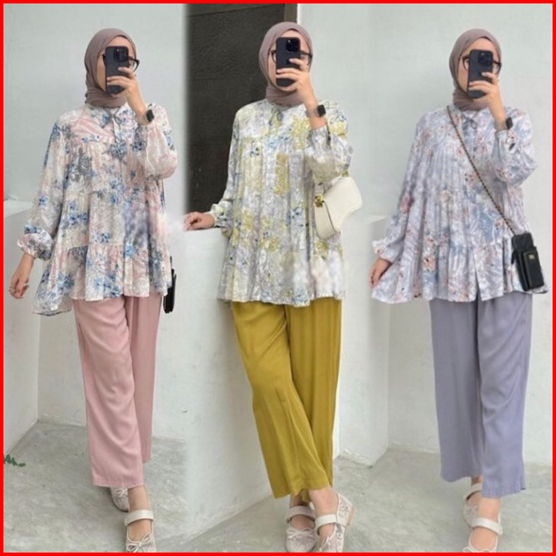 Premium One Set Inara Rayon Diamond Mix Crinkle Premium Setelan Wanita Alivia Motif Corak Bunga Cantik Elegan Viral Terb