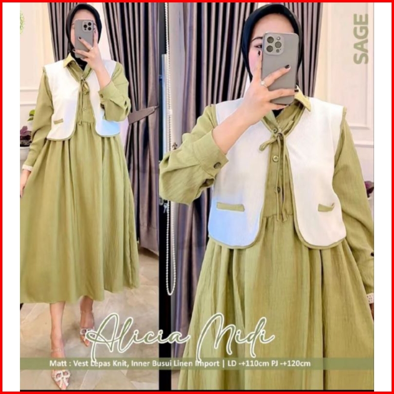 Gamis Rompi Vidia Dress Cringkle Premium Gamis Wanita Gamis Susun Premium