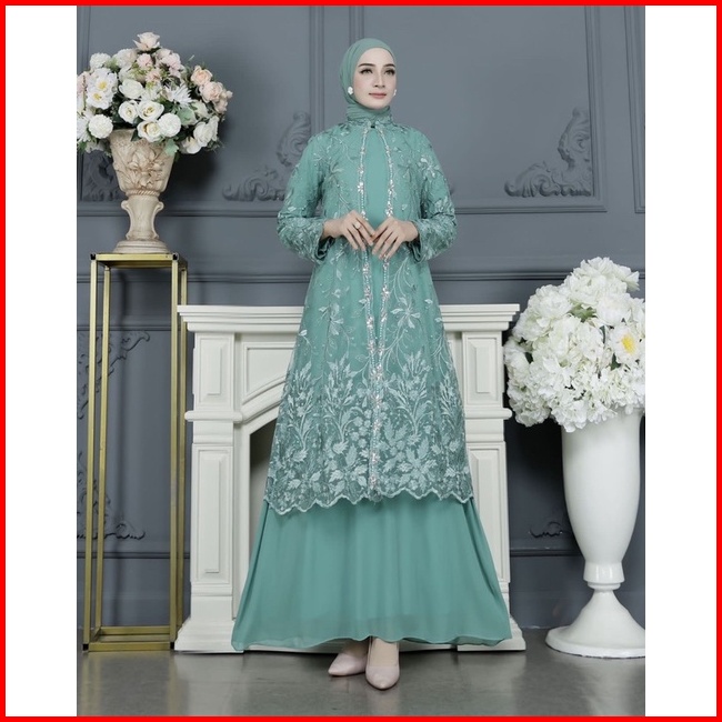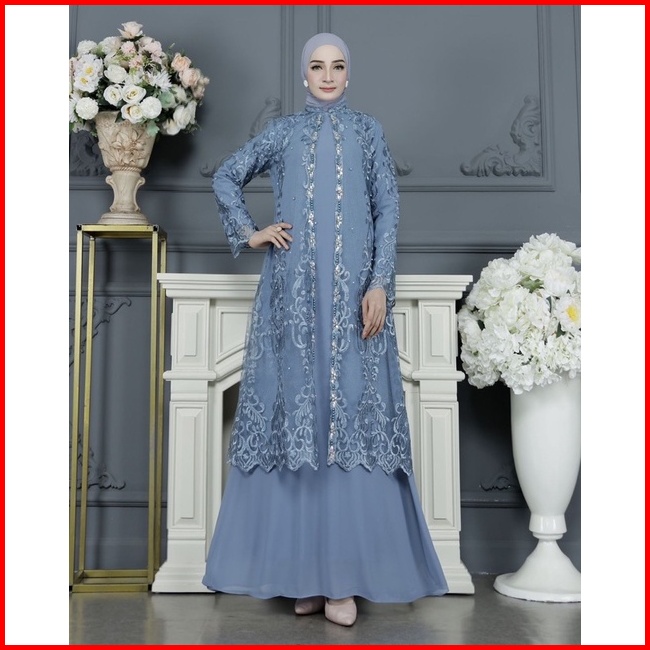 New Arrival Gamis Rompi Outher Terpisah Gamis Pesta Modern Gamis Tulle Non Gliter Gamis Kondangan Mewah Dres Kekinian Ga