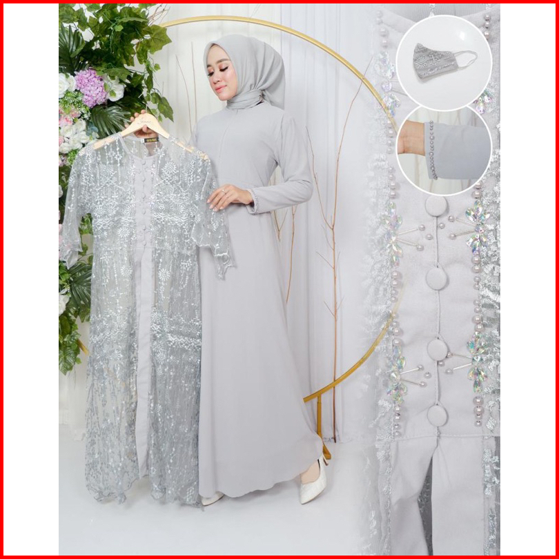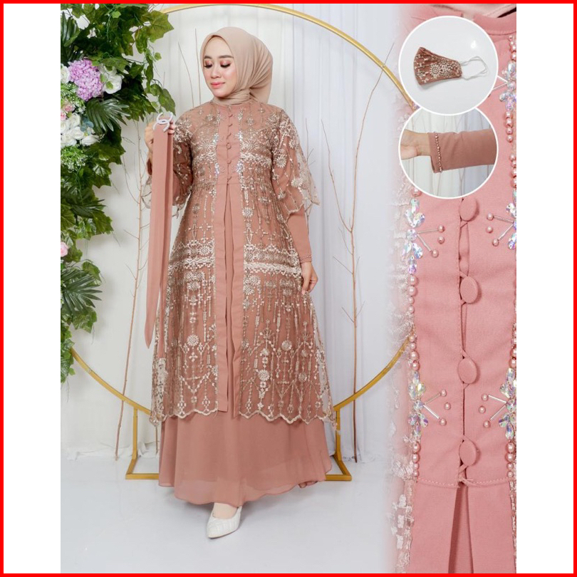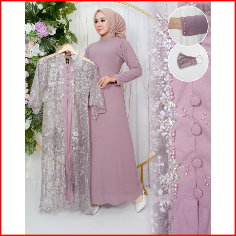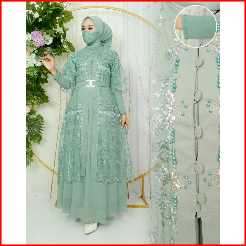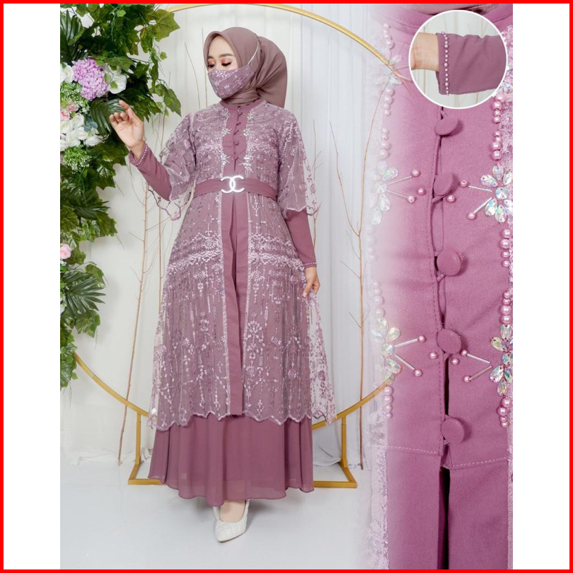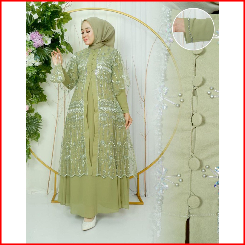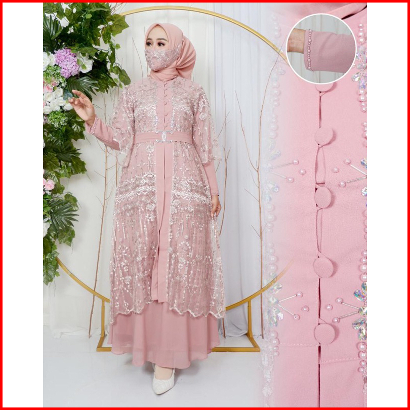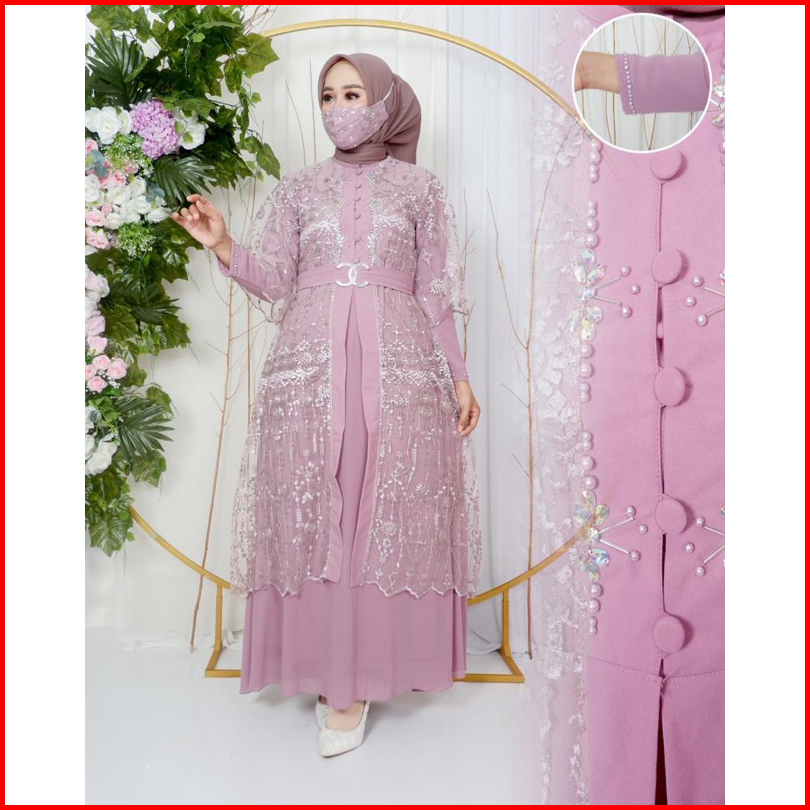 Adeena Dress - Dress Cardigan Lepas Pasang - Gamis Outher 2in1 - Gamis Pesta Mewah - Dress Kondangan - Dress Wisuda - Ba