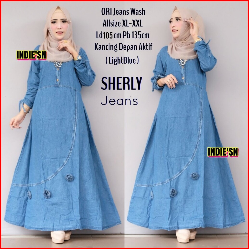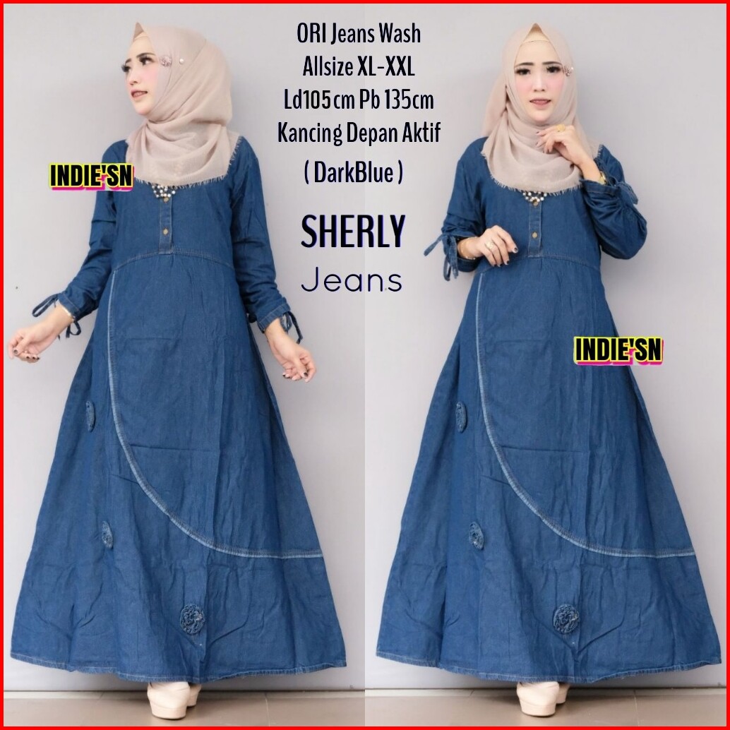 Gamis Mawar Sherly Jeans Dress Original Kekinian Solo