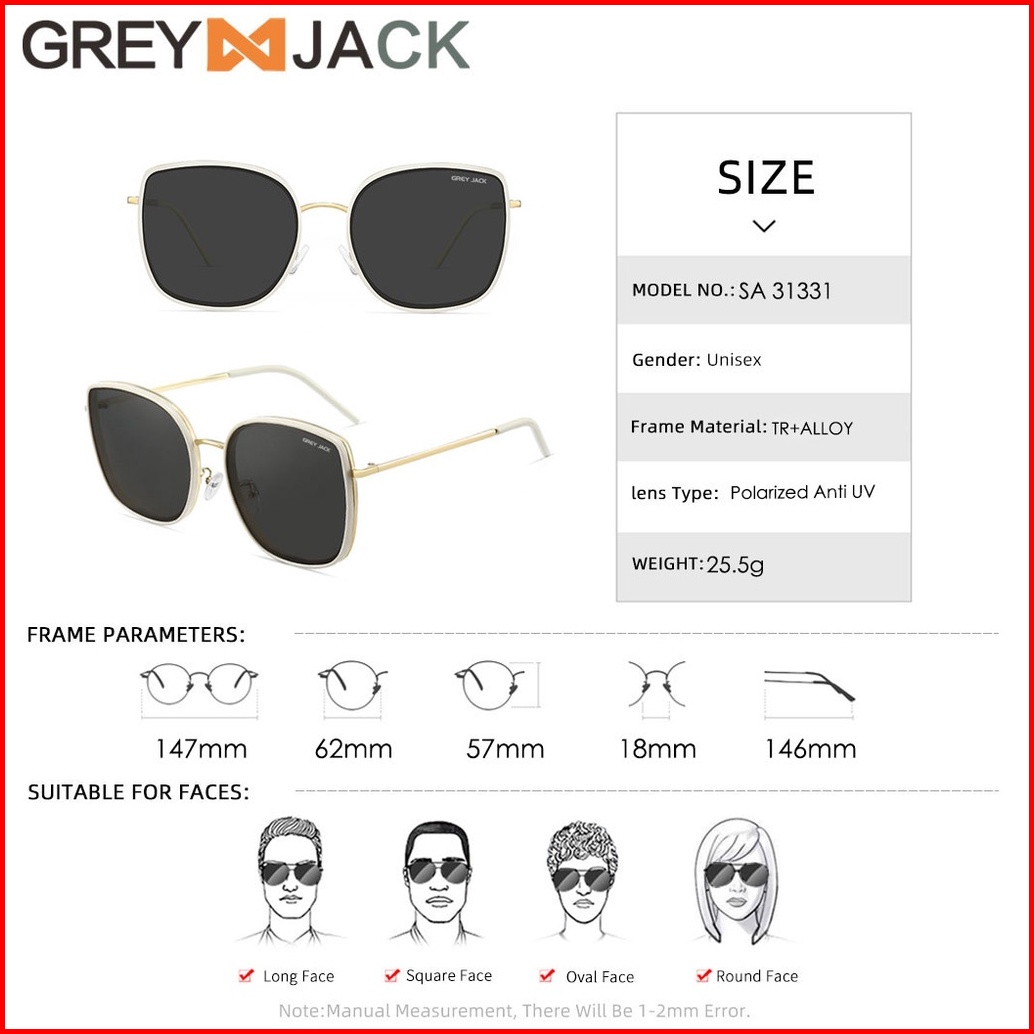 Grey Jack Kacamata Hitam Polarized Sunglasses Anti Uv Korean Style Kotak Oversized Cat Eye Fashion Wanita New Trend Keki