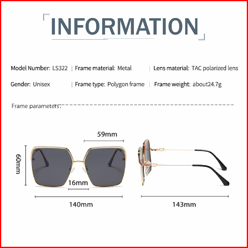Sson Tvte Kacamata Hitam Oversize Sunglasses Polarized Anti Uv400 Gaya Kotak Metal Ls322