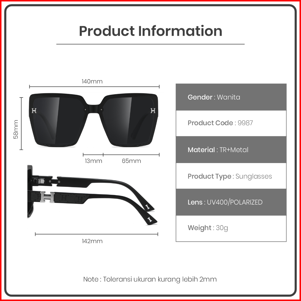 Genius Maiden Kacamata Hitam Sunglasses Fashion Korea Pria Wanita Unisex Polarized Uv-400 Tr-90 Lentur 9987