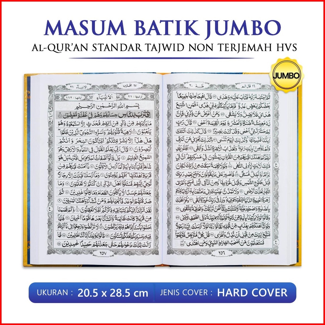 Al Quran Besar Non Terjemah Wakaf A4 20 X 28 Masum Batik Alquran Hafalan Hardcover Hvs Lingkar Media Lm - Lm