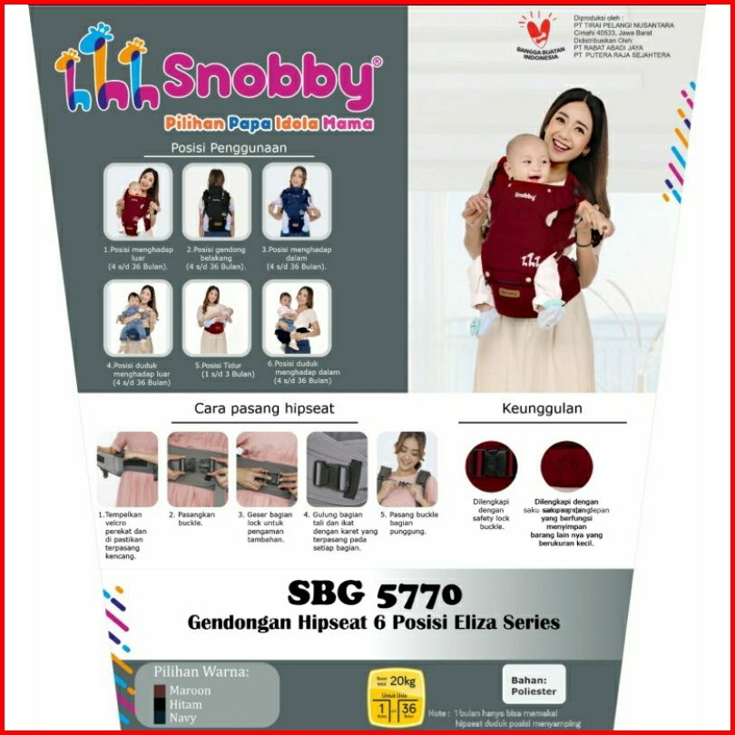 Snobby Gendongan Bayi Hipseat 6 Posisi Box Eliza Series Xelyn Hipseat Premium Snobby Polos Eliza Hip Seat Snobby
