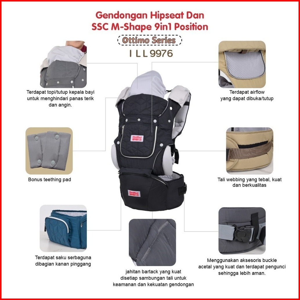 Dialogue Baby Gendongan Hipseat Dan Ssc M-shape Airflow Bayi 9 In 1 Ottimo Series Dgg4421