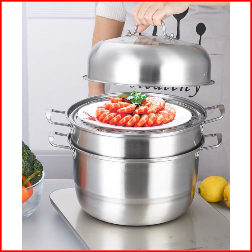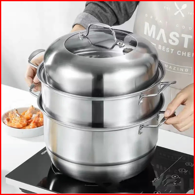 Indoline - New Panci Kukus 3 Susun Tingkat Stainless Steel - Steamer Pot Pengukus Multifungsi - Panci Dandang Kukus Panc
