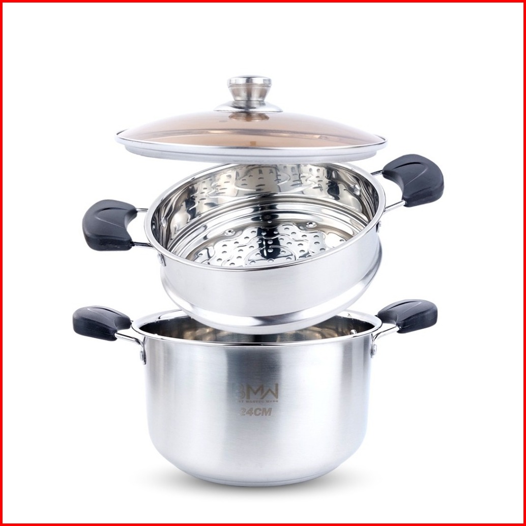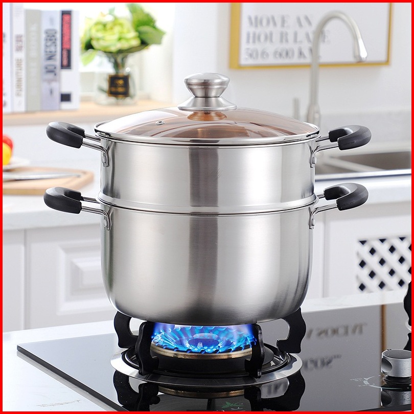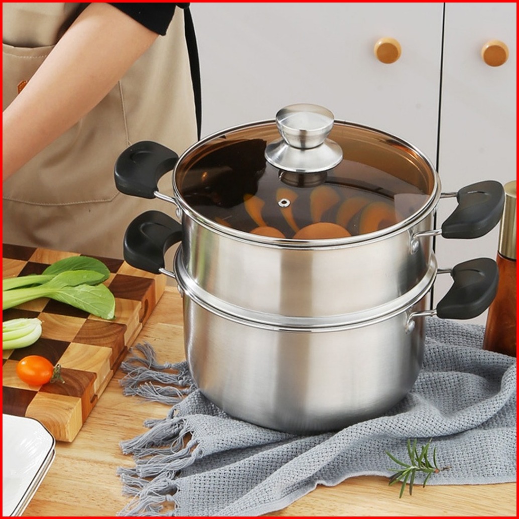 Okela - Panci Berlin Sop Panci Steamer Tebal Panci Kukus Ikan Bakpao Kue Siomay Susun Tebal Stainless Steel Ukuran 22 24