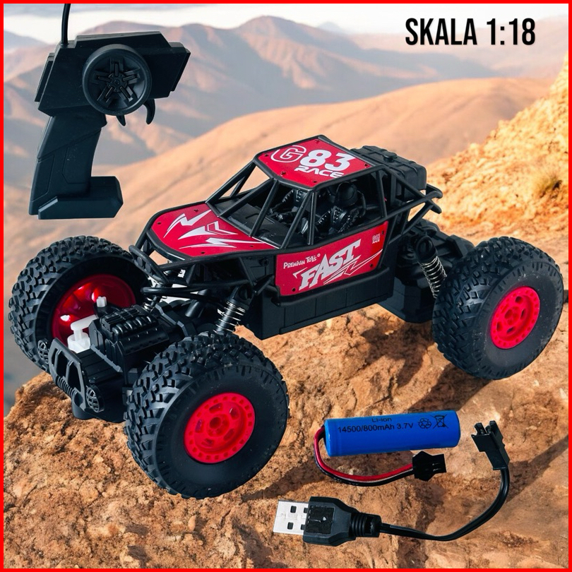 Mobil Remote Road Extreme Merah Skala 1 18 Ban Karet Baterai Cas
