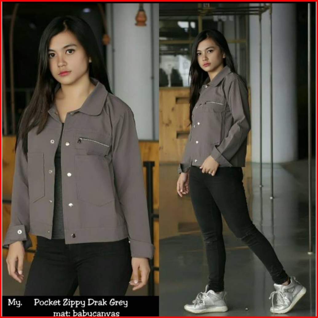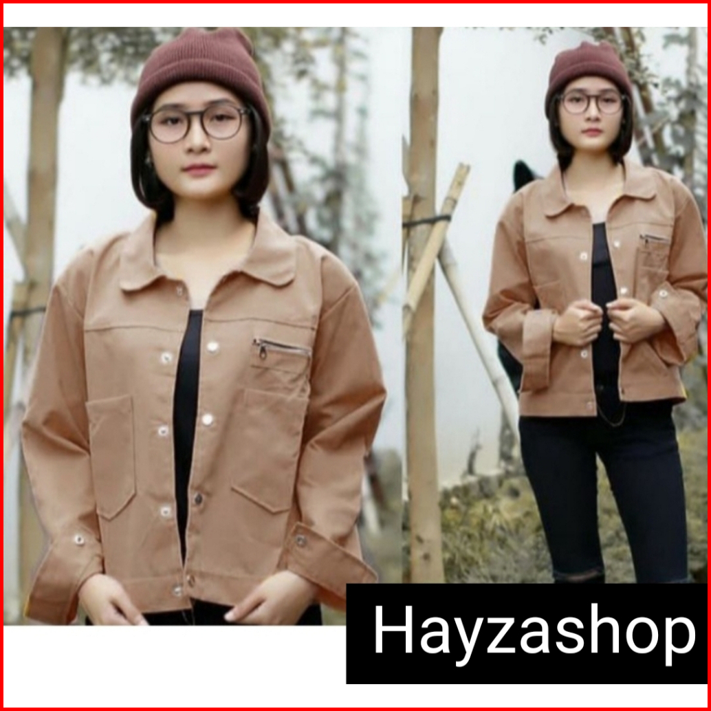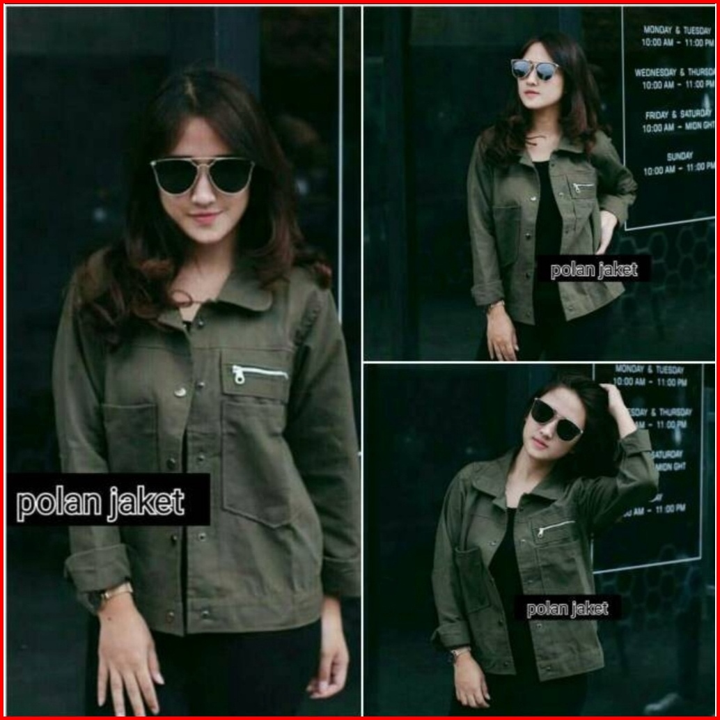 Jaket Polan Wanita Masakini Korean Style Bahan Drill Tebal Lembut Kuwalitas Bagus