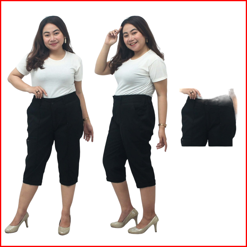 Putri Nasya - Celana Big Size Pendek 7 9 Ukuran 8l 6l 5l 4l 2l Xl S Fit To L Warna Cream Capucino Moca Hitam Abu Tua Mud