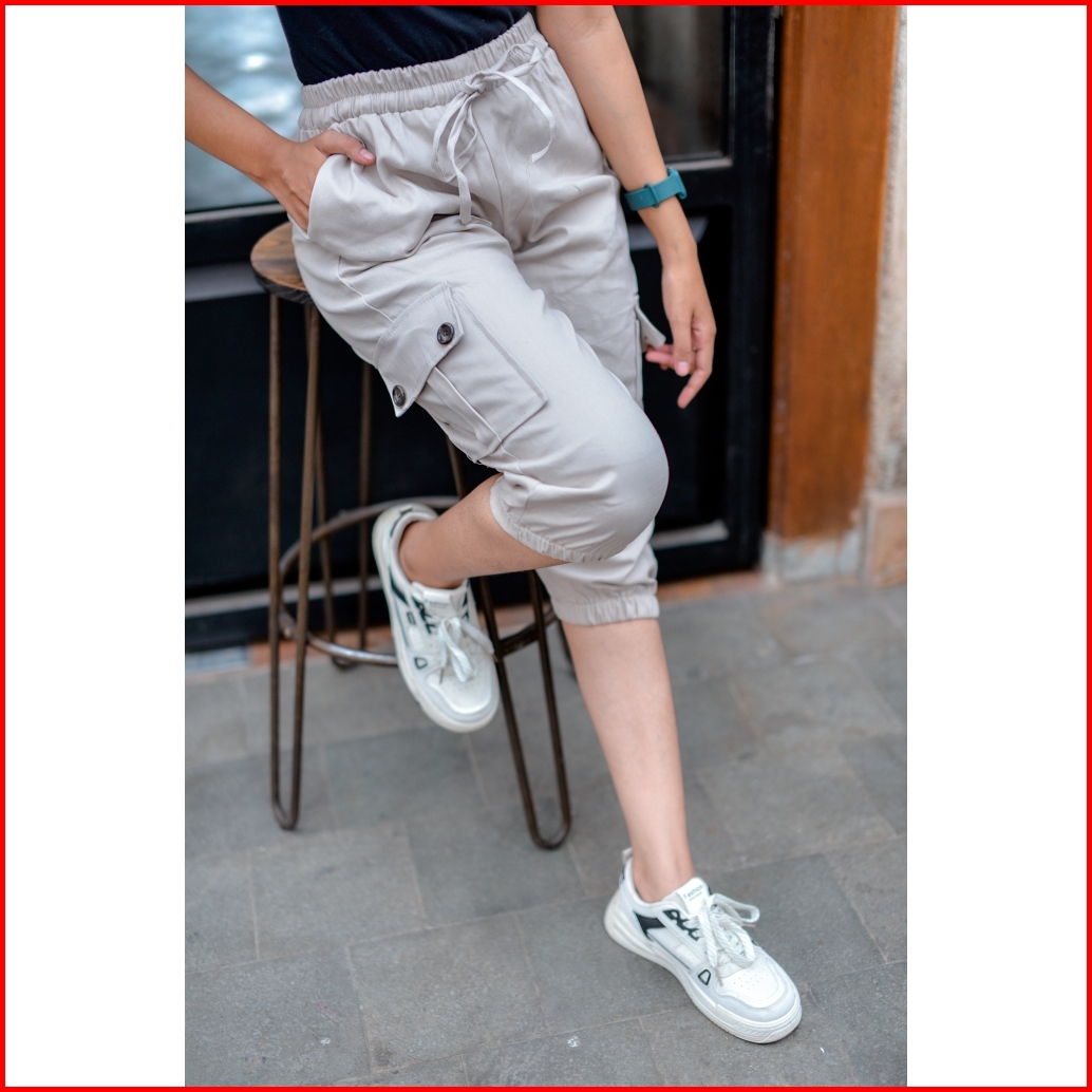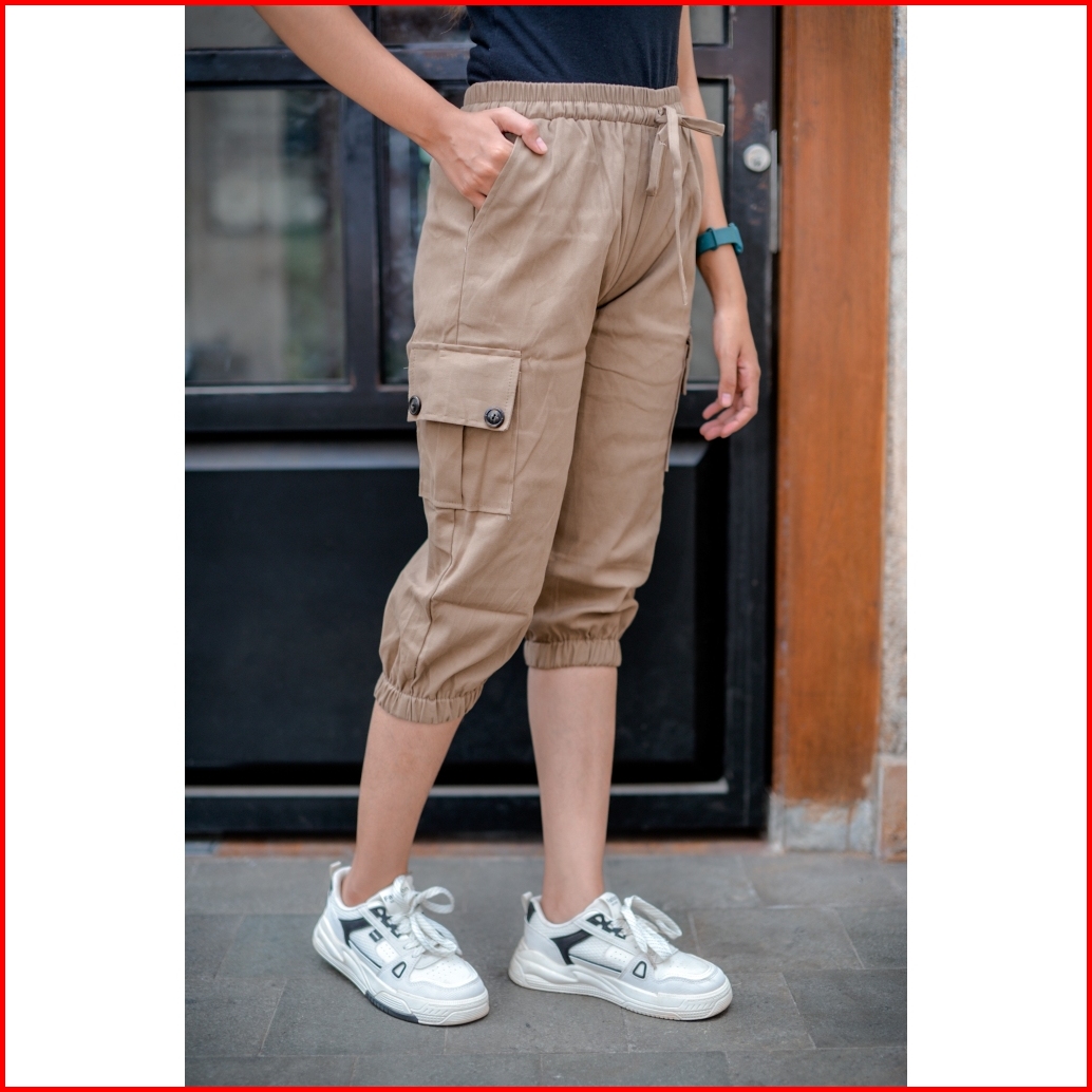Alesha Celana Wanita Cargo Pants 7 8 Kantong Cargo Combed Melar Nyaman