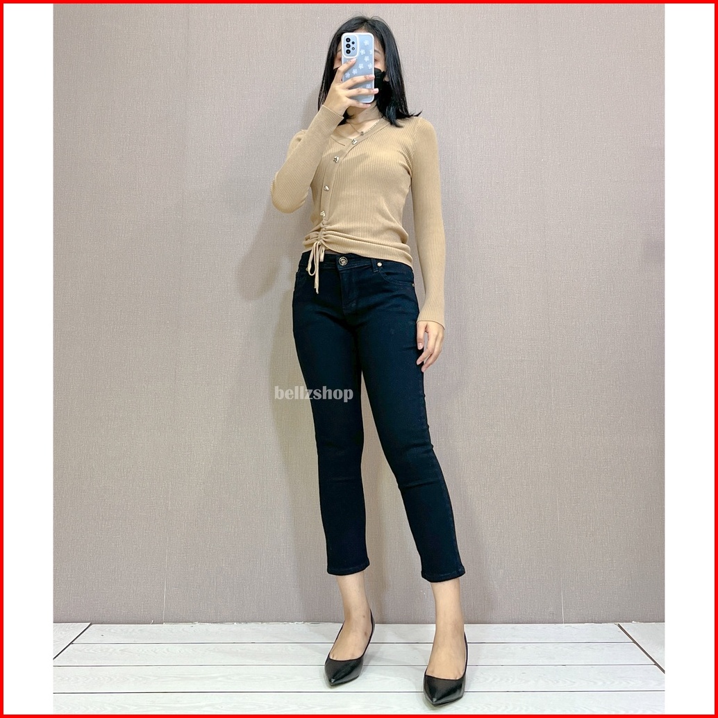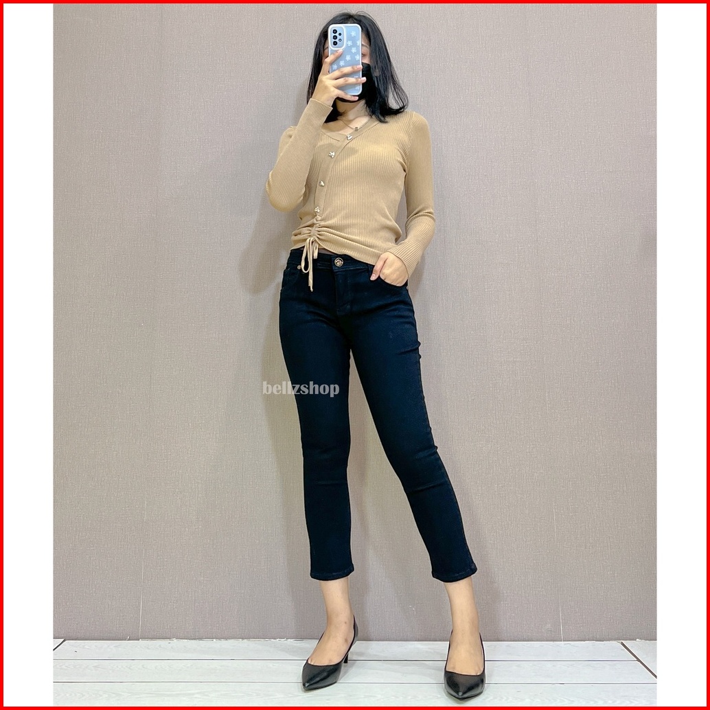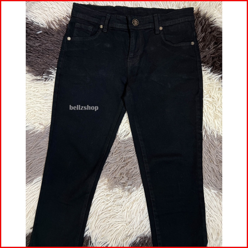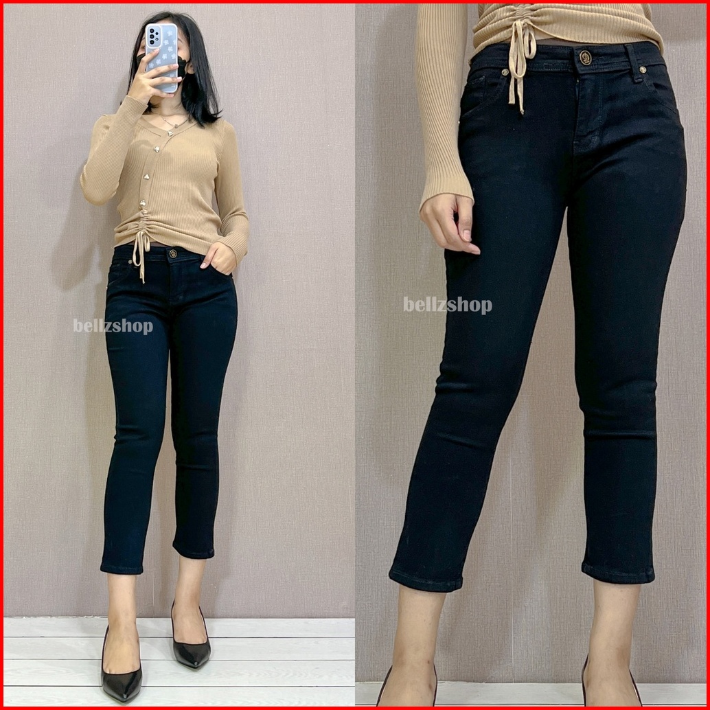 Celana Jeans 7 9 Wanita Pensil Hitam Pekat Stretch Jumbo Premium Bellzshop 7924 Size 27 Sd 34