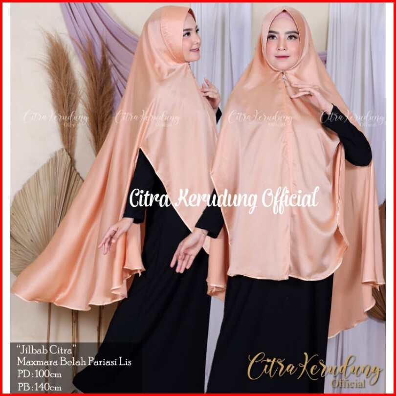 Jilbab Syari Model Belah Samping Variasi Lis Pita Warna Bahan Satin Maxmara Glossy Soft Flowy
